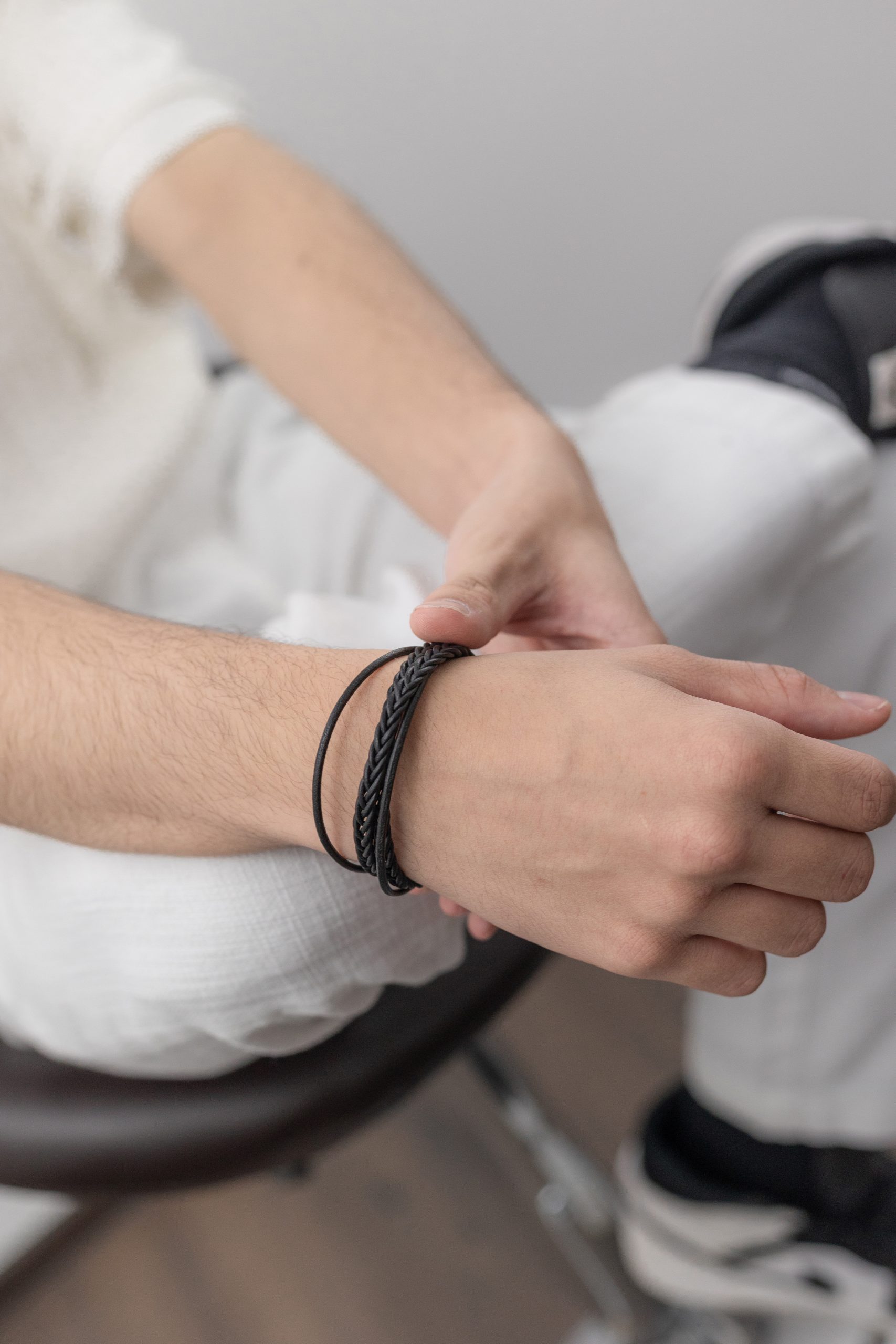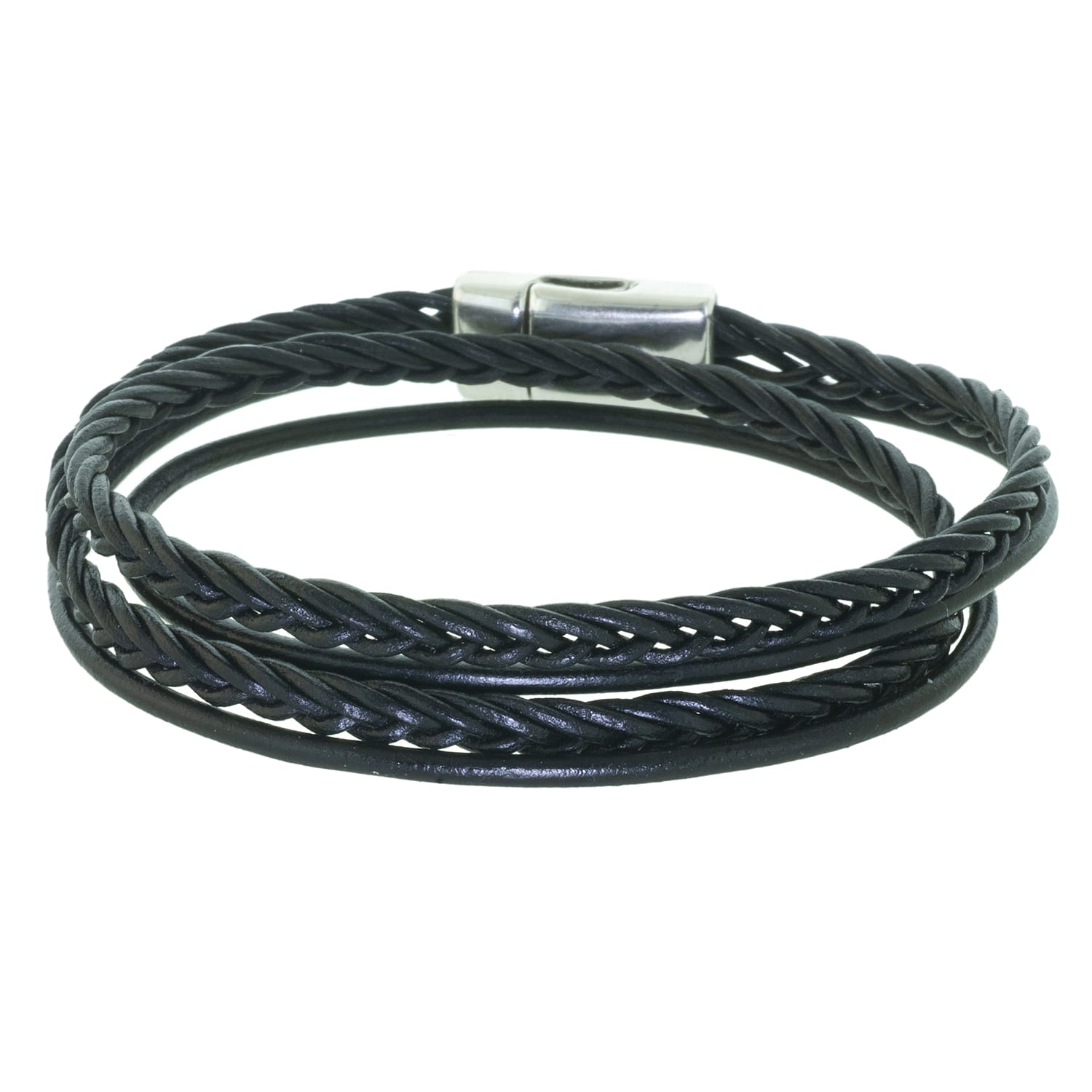 Brățară bărbați ‘Double’ neagră din piele și cu închidere magnetică