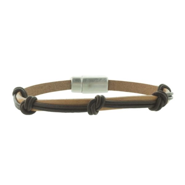 Brățară bărbați ‘Nod’ maro deschis cu noduri din piele naturală