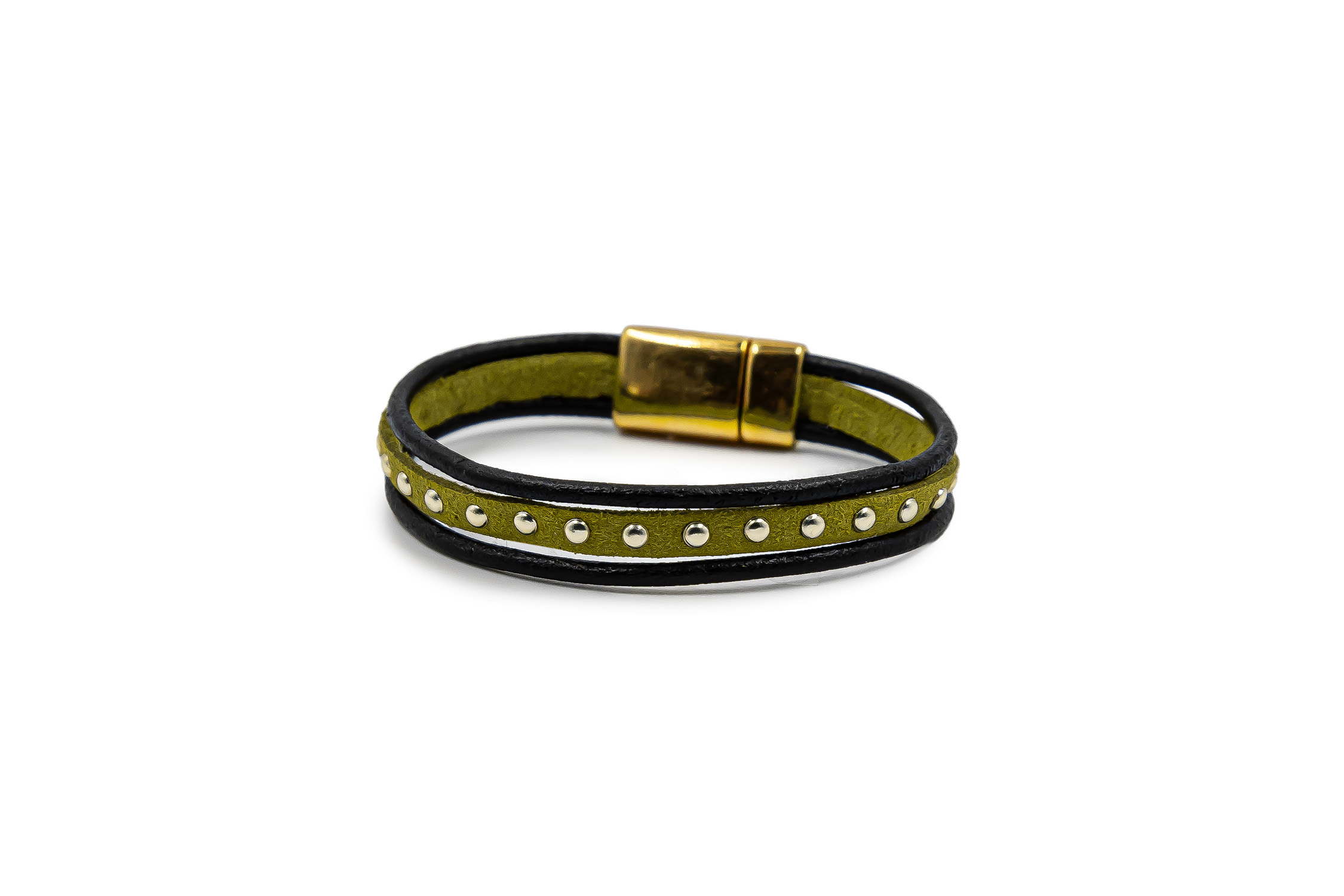 Brățară femei verde ‘Three suede’ din piele întoarsă placată cu aur