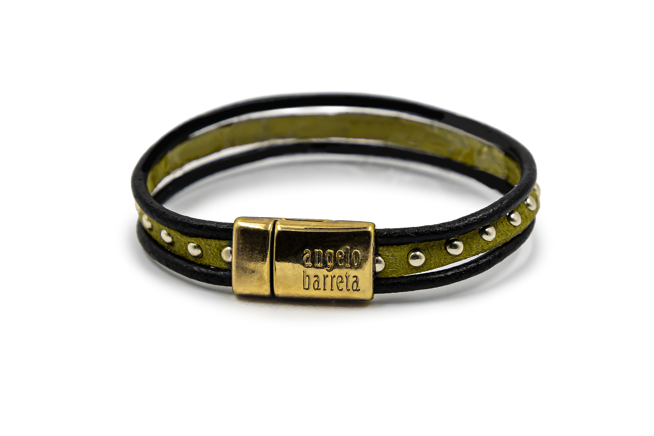 Brățară pentru femei realizată din 3 rânduri de piele și piele întoarsă decorată cu elemente placate cu aur de 24k și cu un sistem de închidere magnetică placat cu aur de 24k. Circumferința brățării este de 19 cm. Această brățară este hipoalergenică. Piesele metalice sunt fabricate din ZAMAC (Zinc, Aluminiu și Cupru) sau ALAMĂ (Fără nichel). Toate produsele noastre care intră în contact cu pielea sunt conforme cu Regulamentul european privind conținutul de nichel, cadmiu și plumb. Produs manual în Grecia! Referința: B5006G
