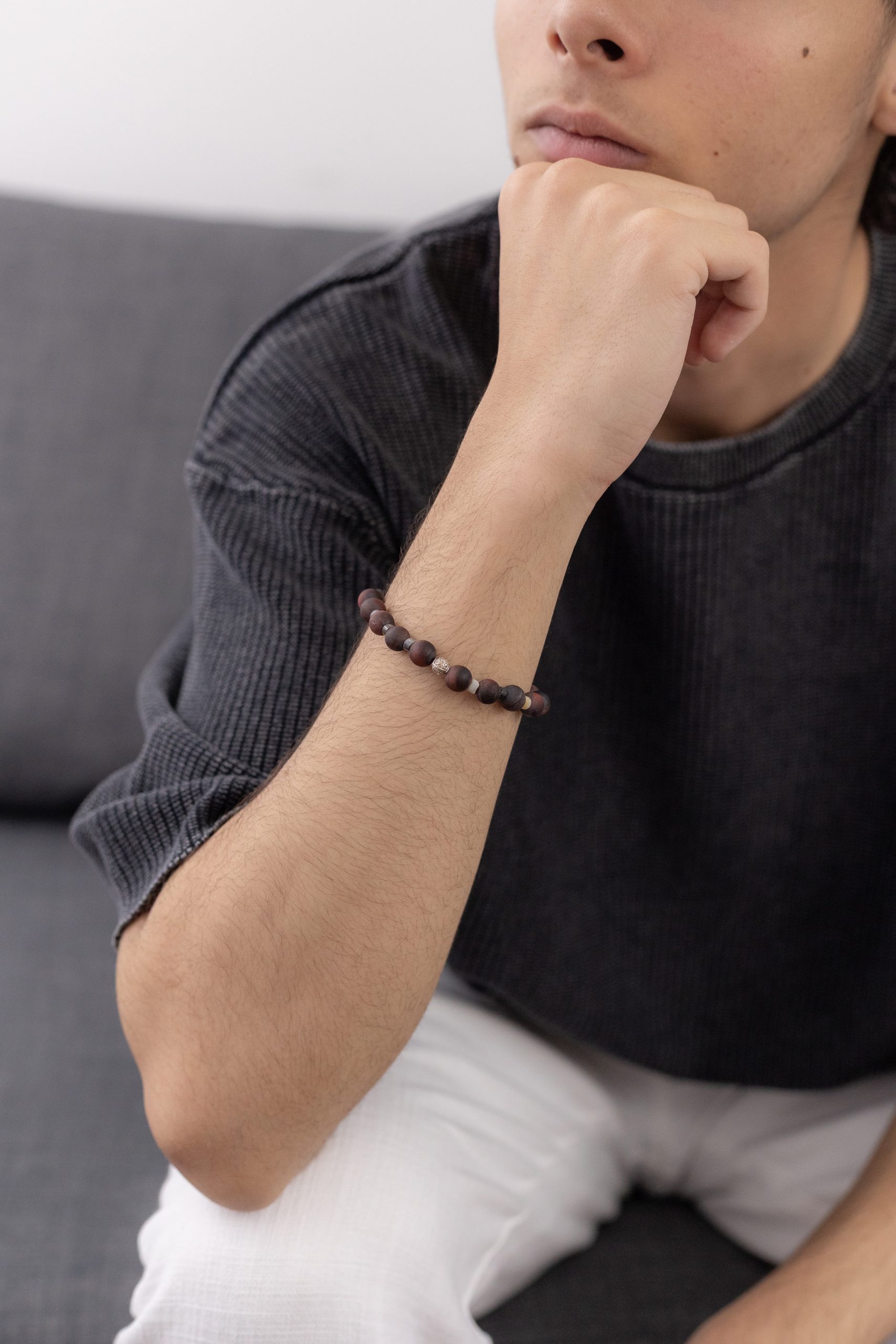 Brățară unisex elastică ‘Rings’ roșie cu ochi de tigru roșu și amazonite