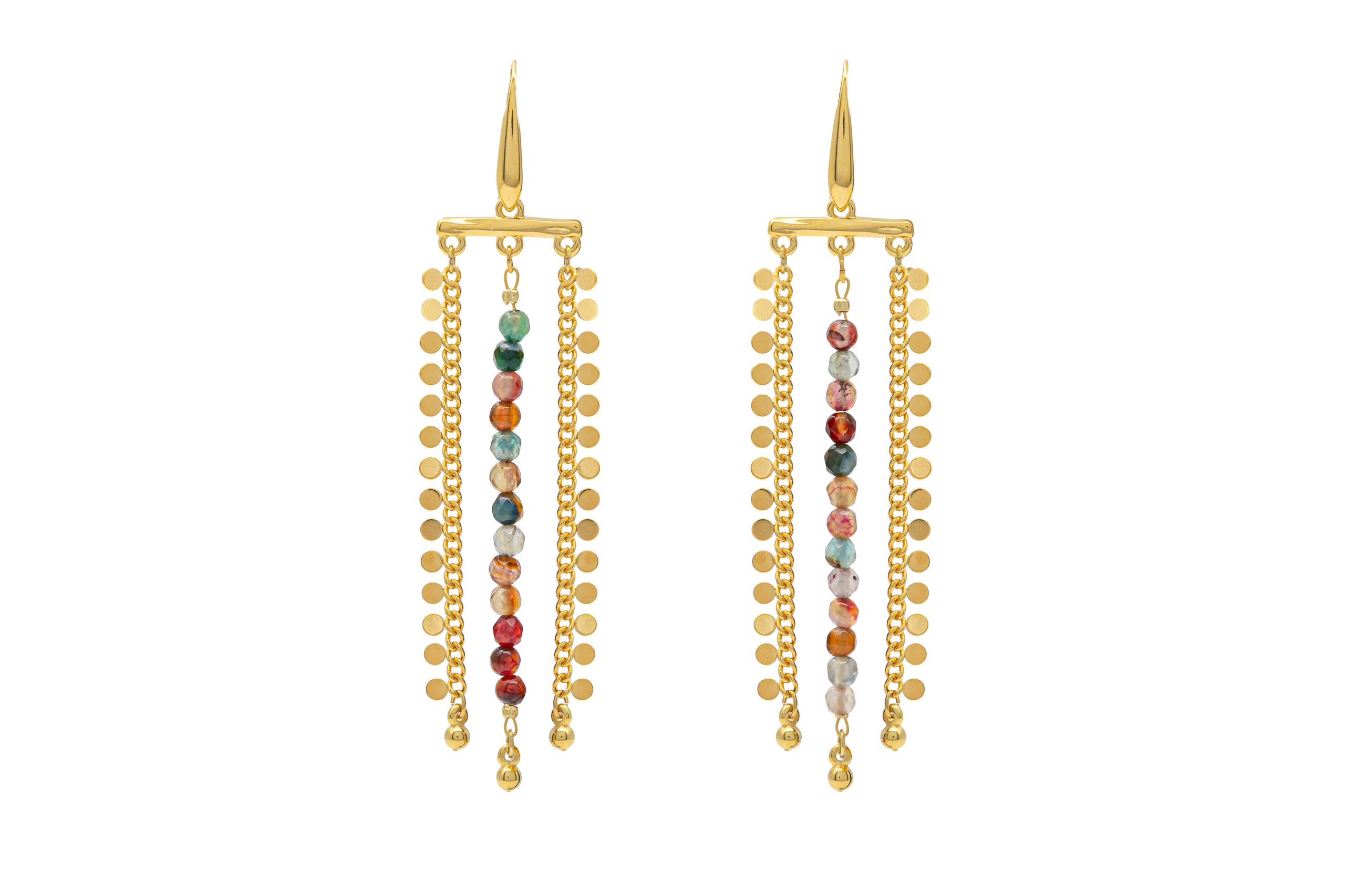 Cercei Agat multicolori cu monede și lanț placați cu aur de 24k