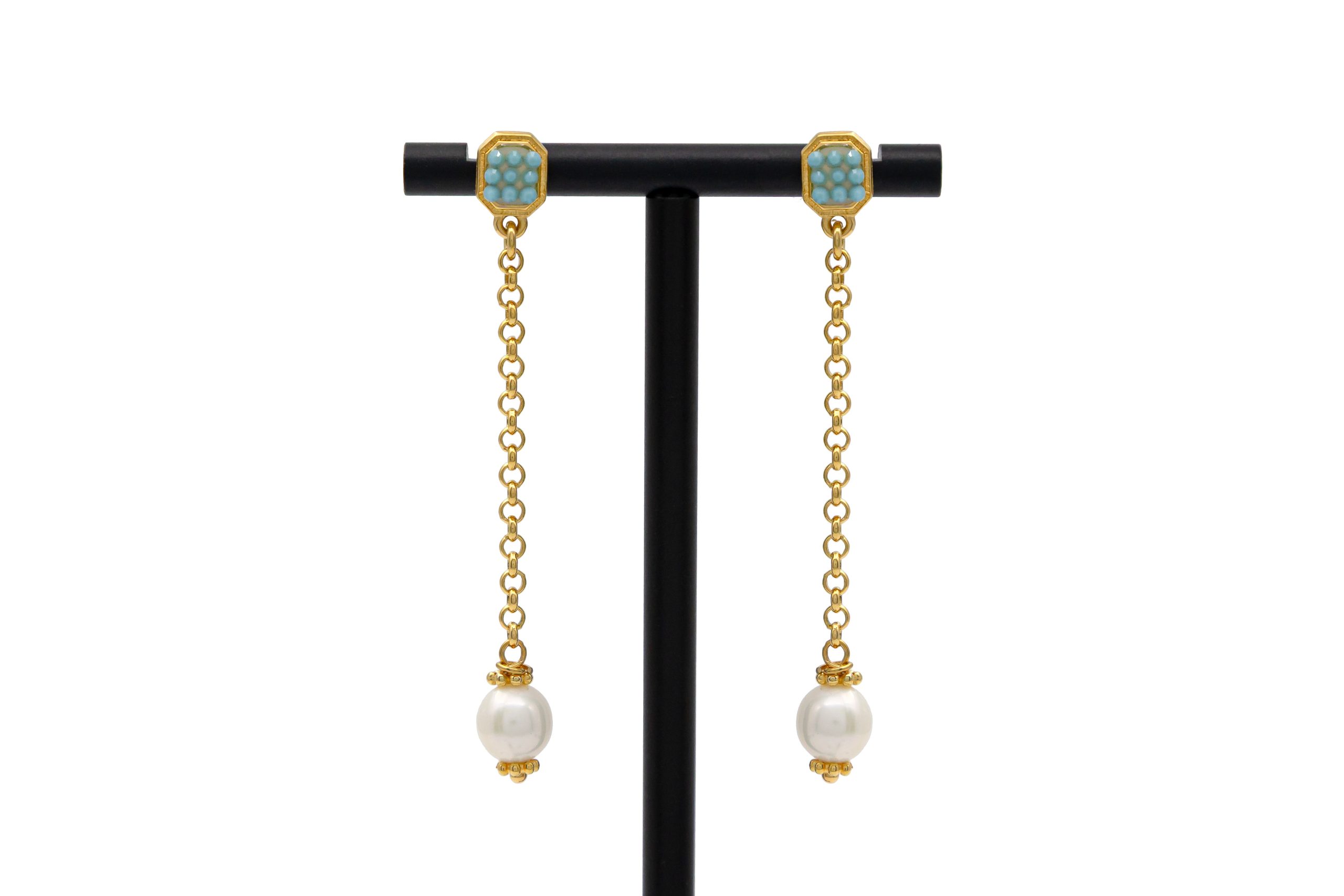 Cercei One pearl turcoaz placați cu aur de 24k și cristale