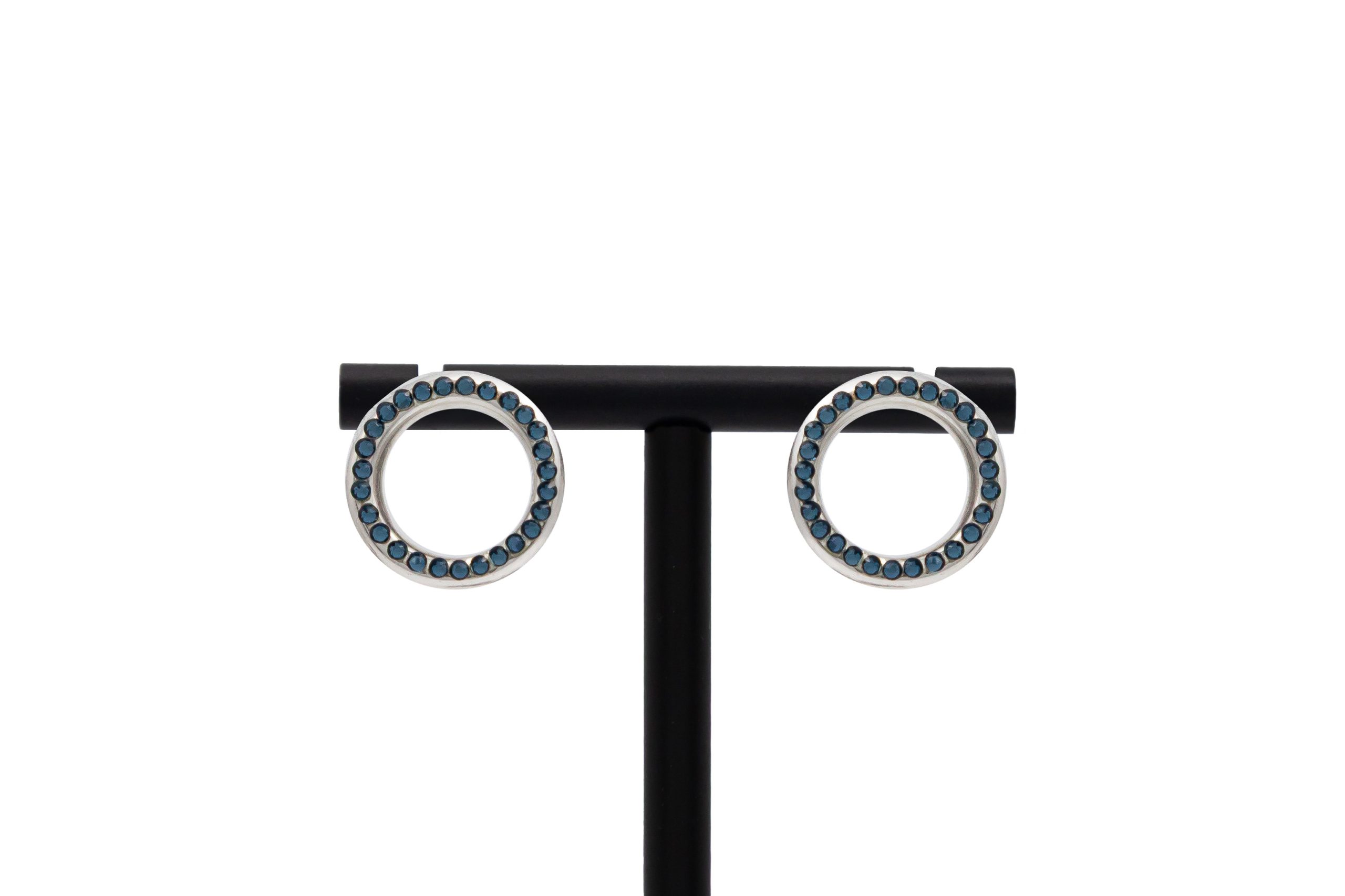 Cercei rotunzi Donut mari albaștri placați cu argint și cristale