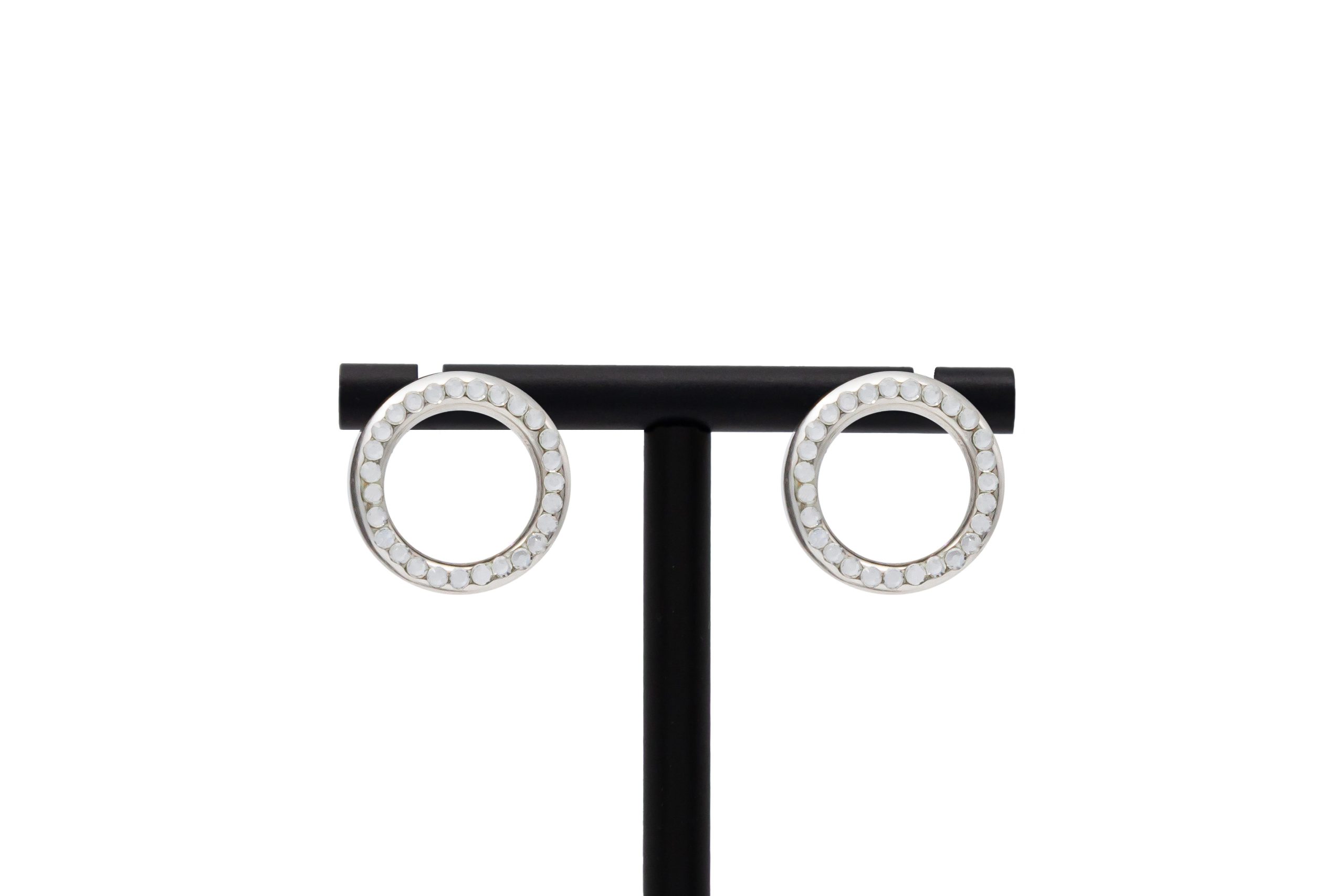 Cercei rotunzi Donut mari cristal placați cu argint și cristale