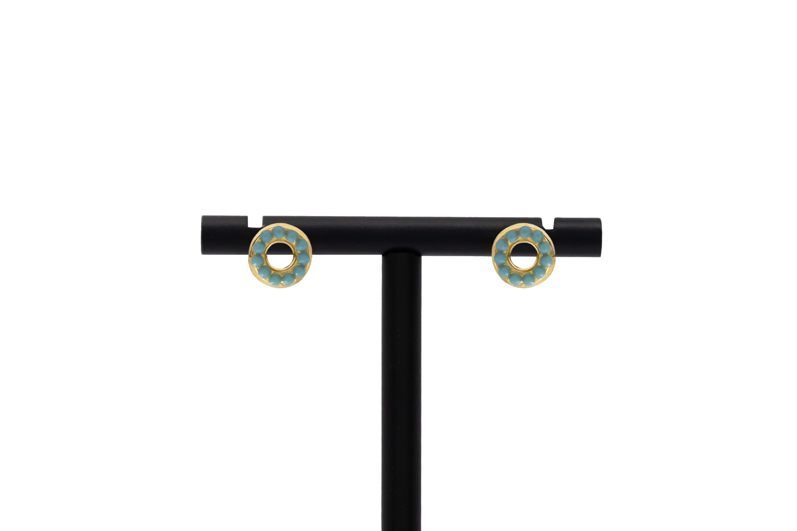 Cercei rotunzi Donut turcoaz placați cu aur de 24k și cristale
