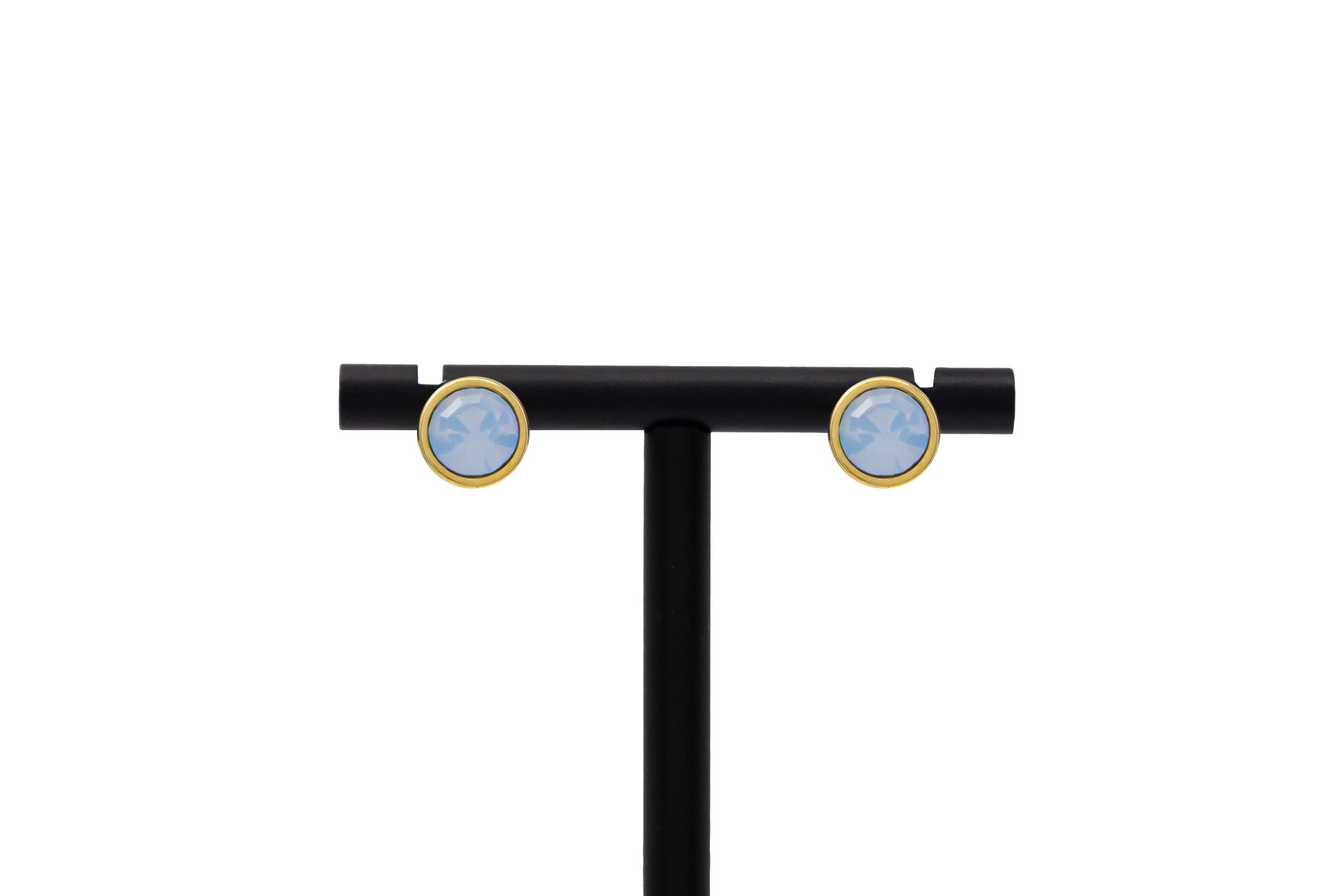Cercei rotunzi Glamour bleu opac placați cu aur de 24k și cristal Swarovski®
