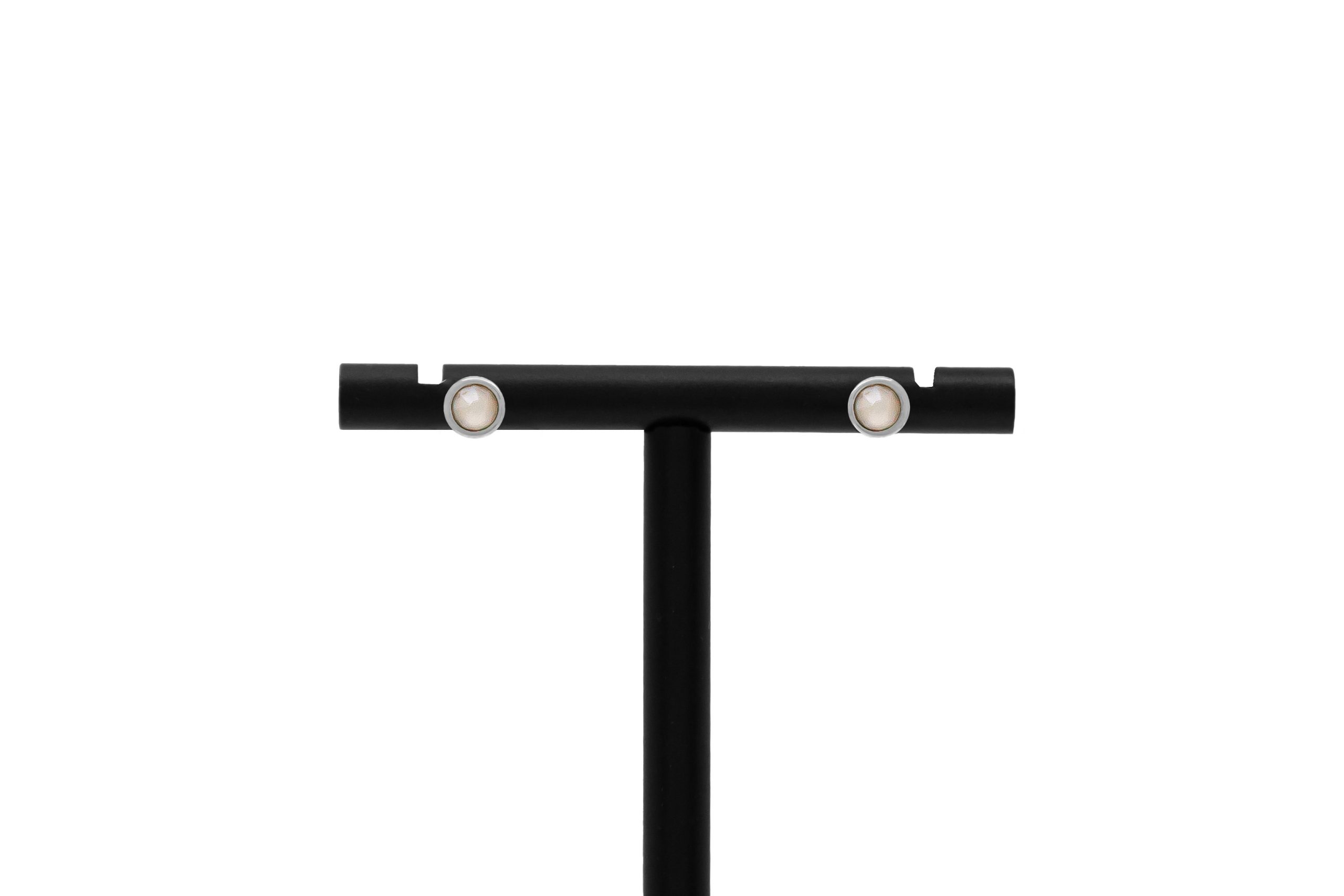 Cercei rotunzi mici Donut alb opac placați cu argint și cristale