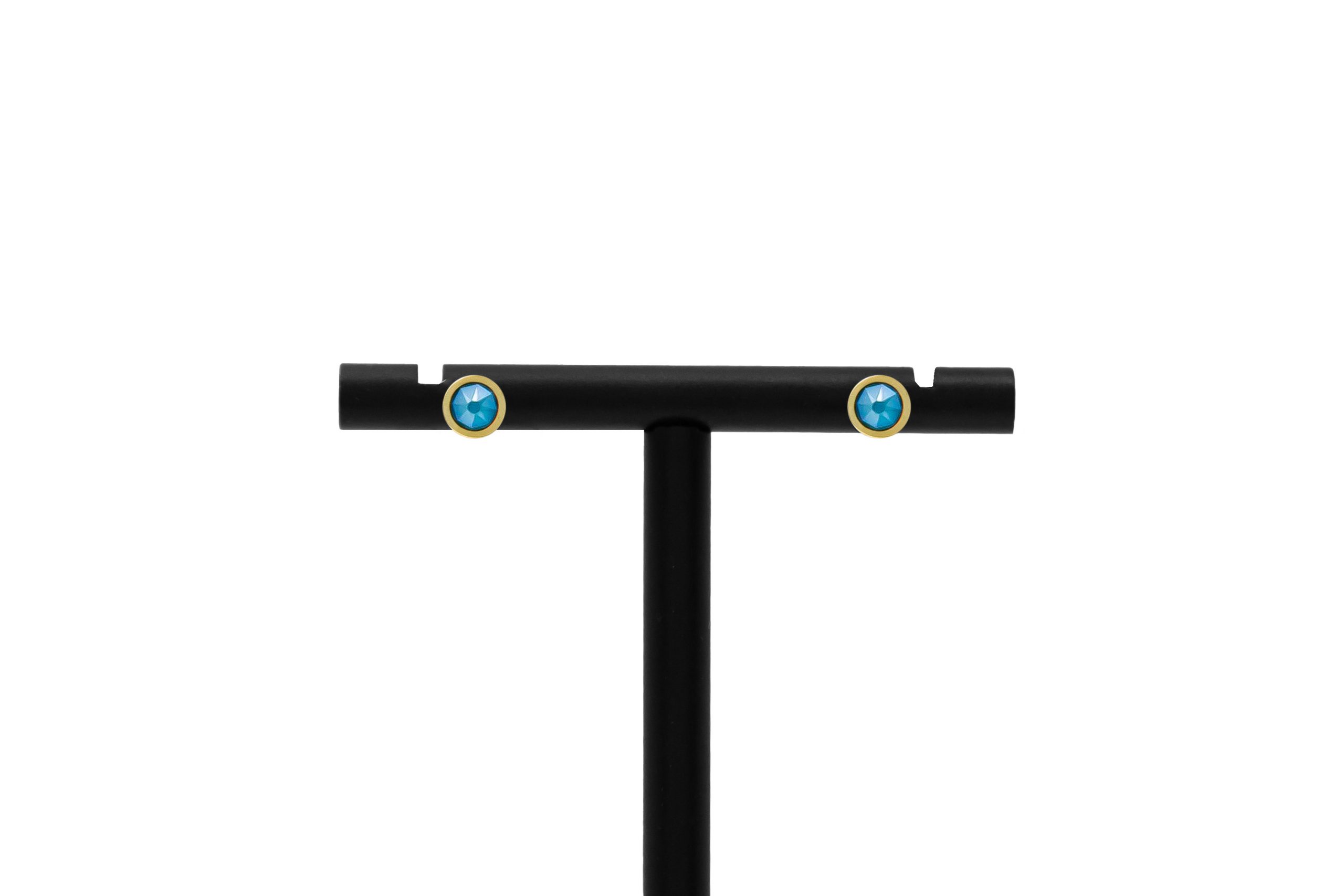 Cercei rotunzi mici Donut albaștri placați cu aur de 24k și cristale