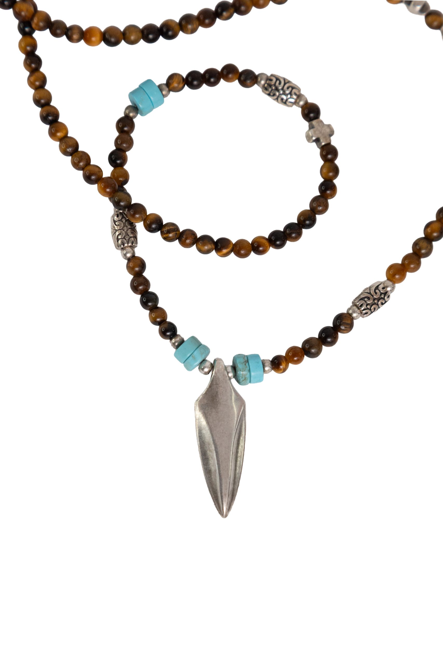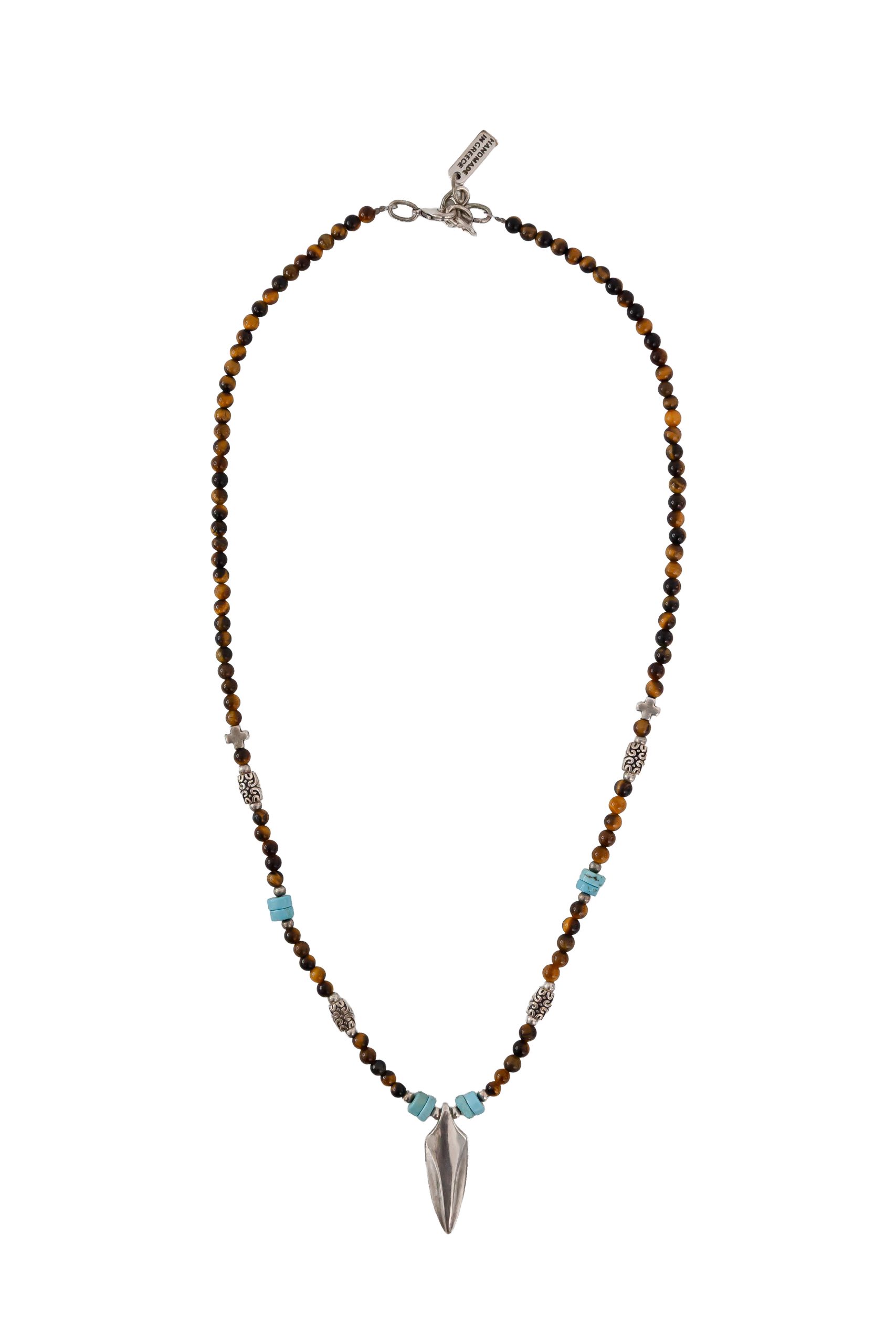 Colier pentru bărbați realizat din pietre semiprețioase și decorat cu pandantiv tip ancoră, placat cu argint. Dispune de un sistem de închidere fix, placate cu argint. Lungimea colierului este de 86 cm. Acest colier este hipoalergenic. Piesele metalice sunt fabricate din ZAMAC (Zinc Aluminiu și Cupru) sau ALAMĂ (Fără nichel). Toate produsele noastre care intră în contact cu pielea sunt conforme cu Regulamentul european privind conținutul de nichel, cadmiu și plumb. Produs manual în Grecia! Referința: K01033S