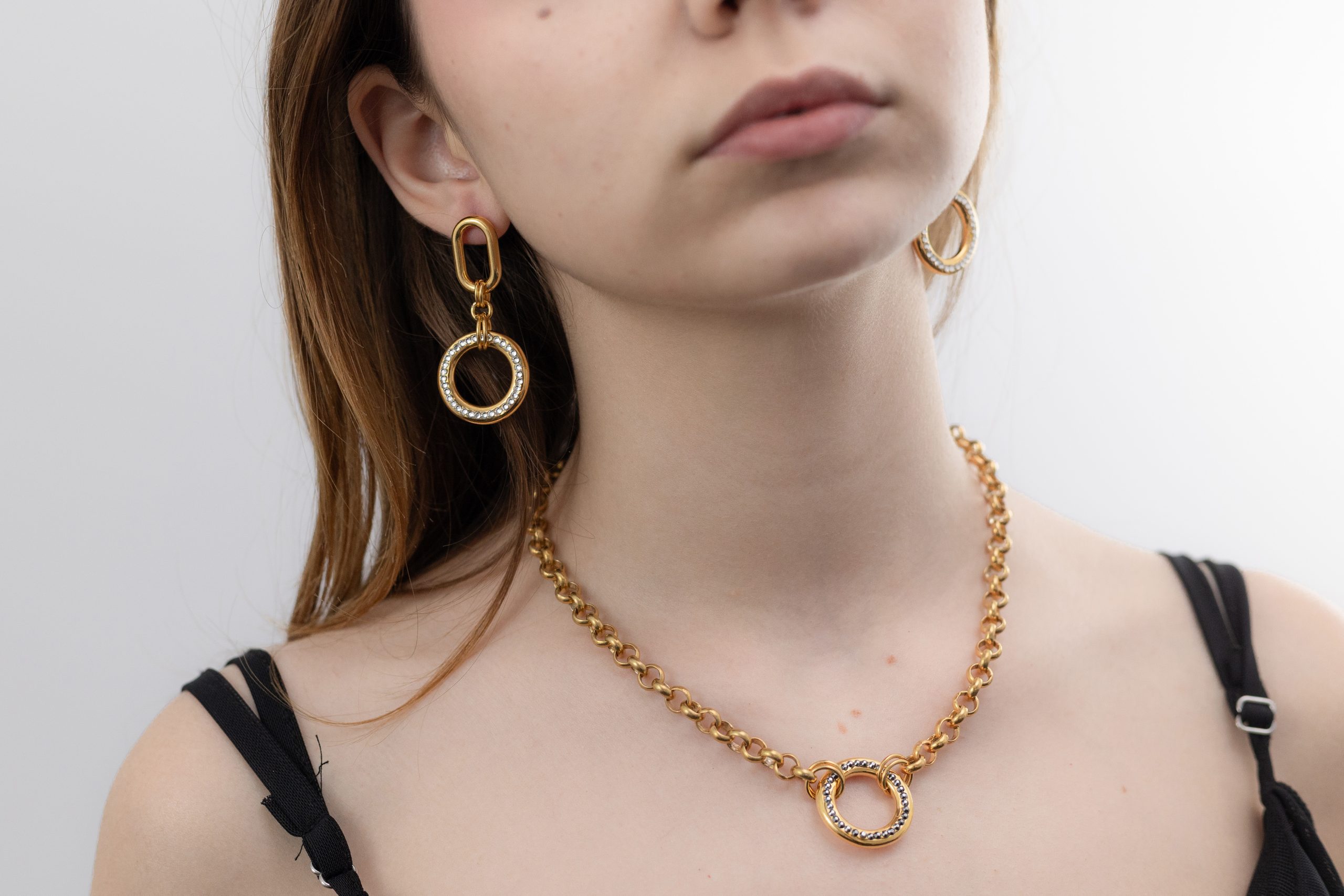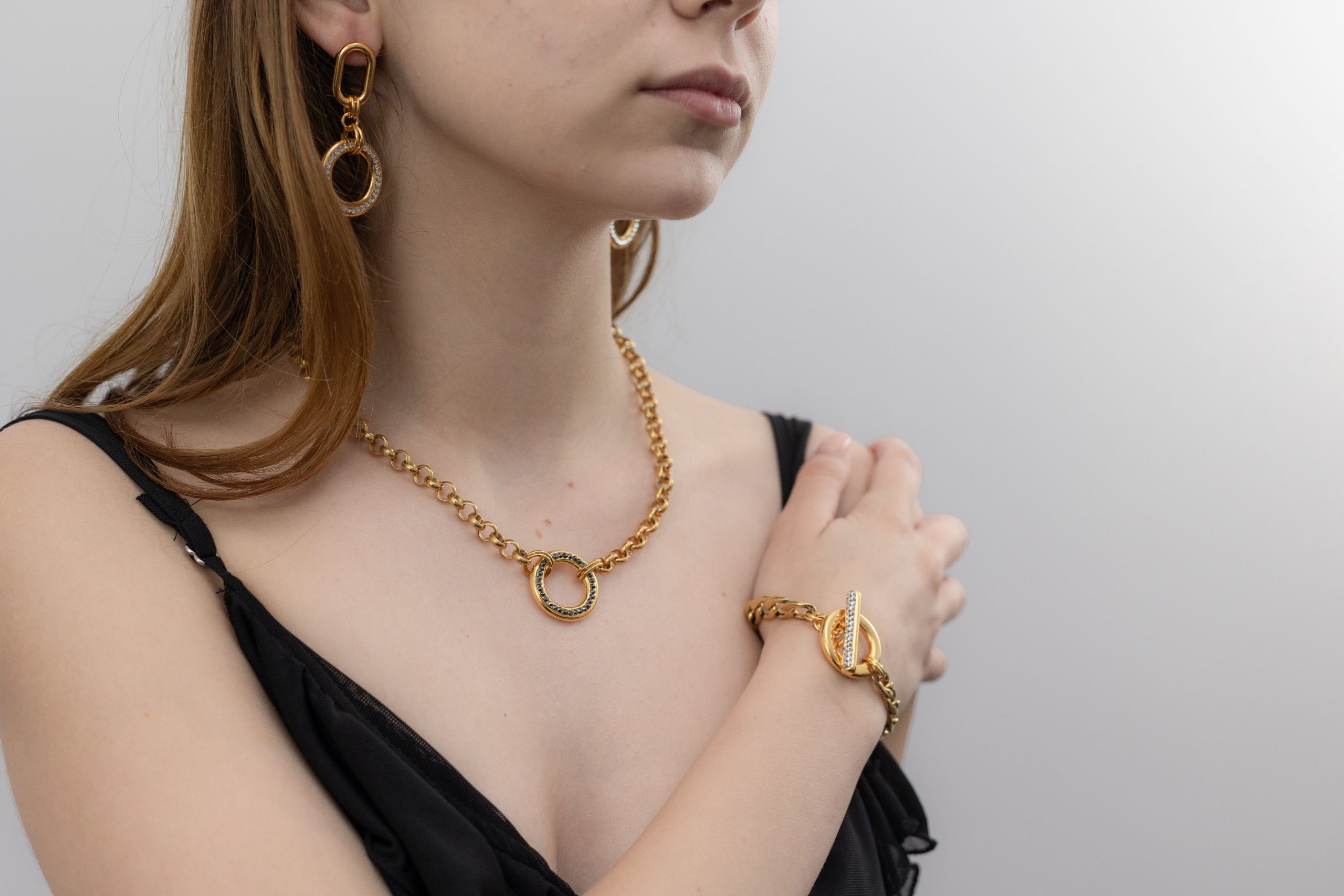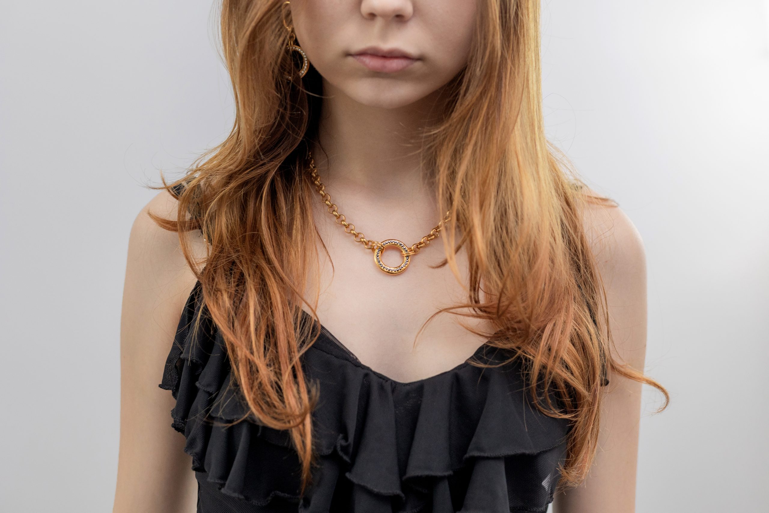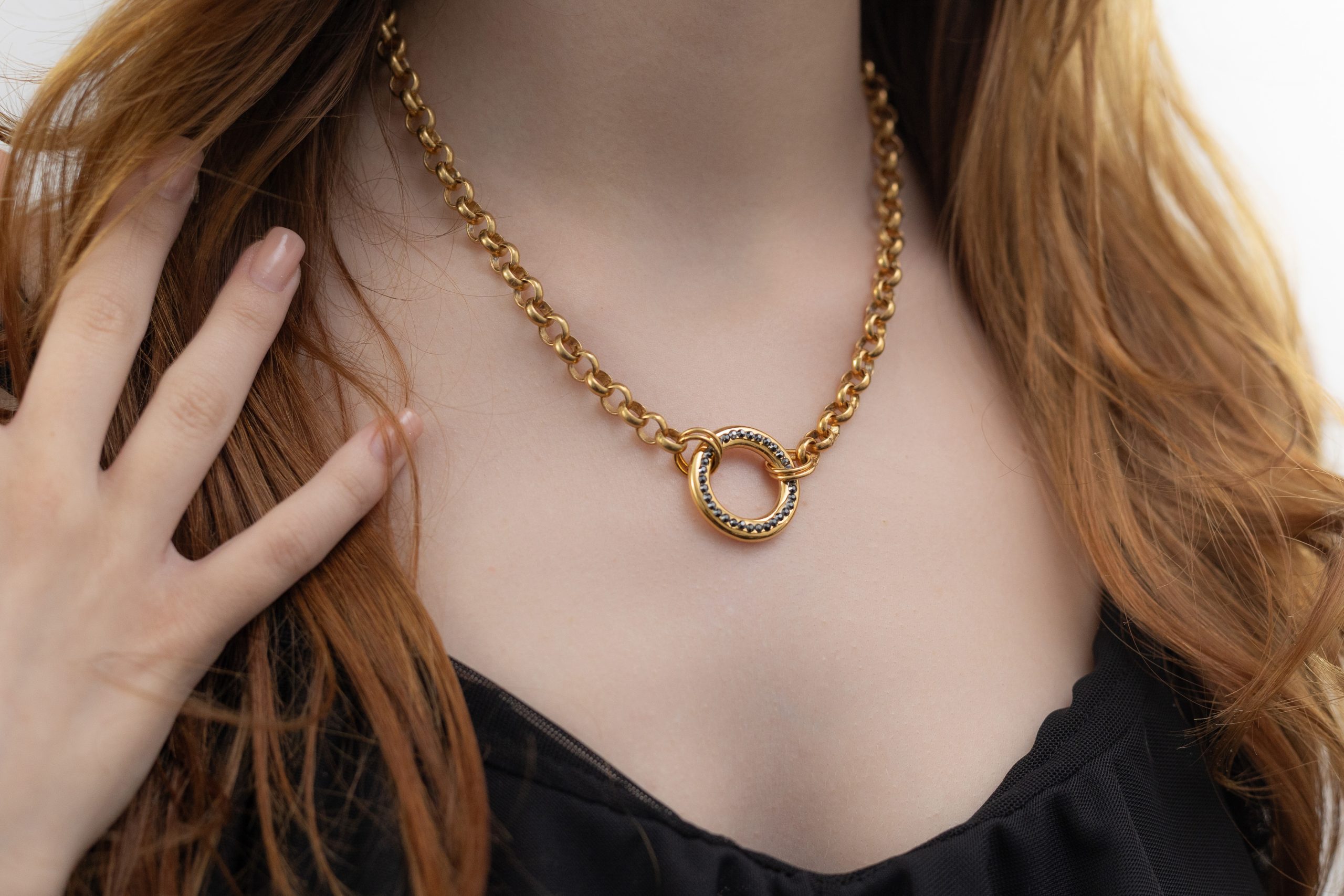 Colier pentru femei realizat din lanț placat cu aur de 24k și pandantiv – cerc cu hematite. Dispune de lanț prelungitor și un sistem de închidere tip homar placate, de asemenea, cu aur de 24k. Lungimea colierului reglabilă intre 22 cm – 27 cm, extensia fiind de 5 cm. Acest colier este hipoalergenic. Piesele metalice sunt fabricate din ZAMAC (Zinc Aluminiu și Cupru) sau ALAMĂ (Fără nichel). Toate produsele noastre care intră în contact cu pielea sunt conforme cu Regulamentul european privind conținutul de nichel, cadmiu și plumb. Produs manual în Grecia! Referința: N6514G