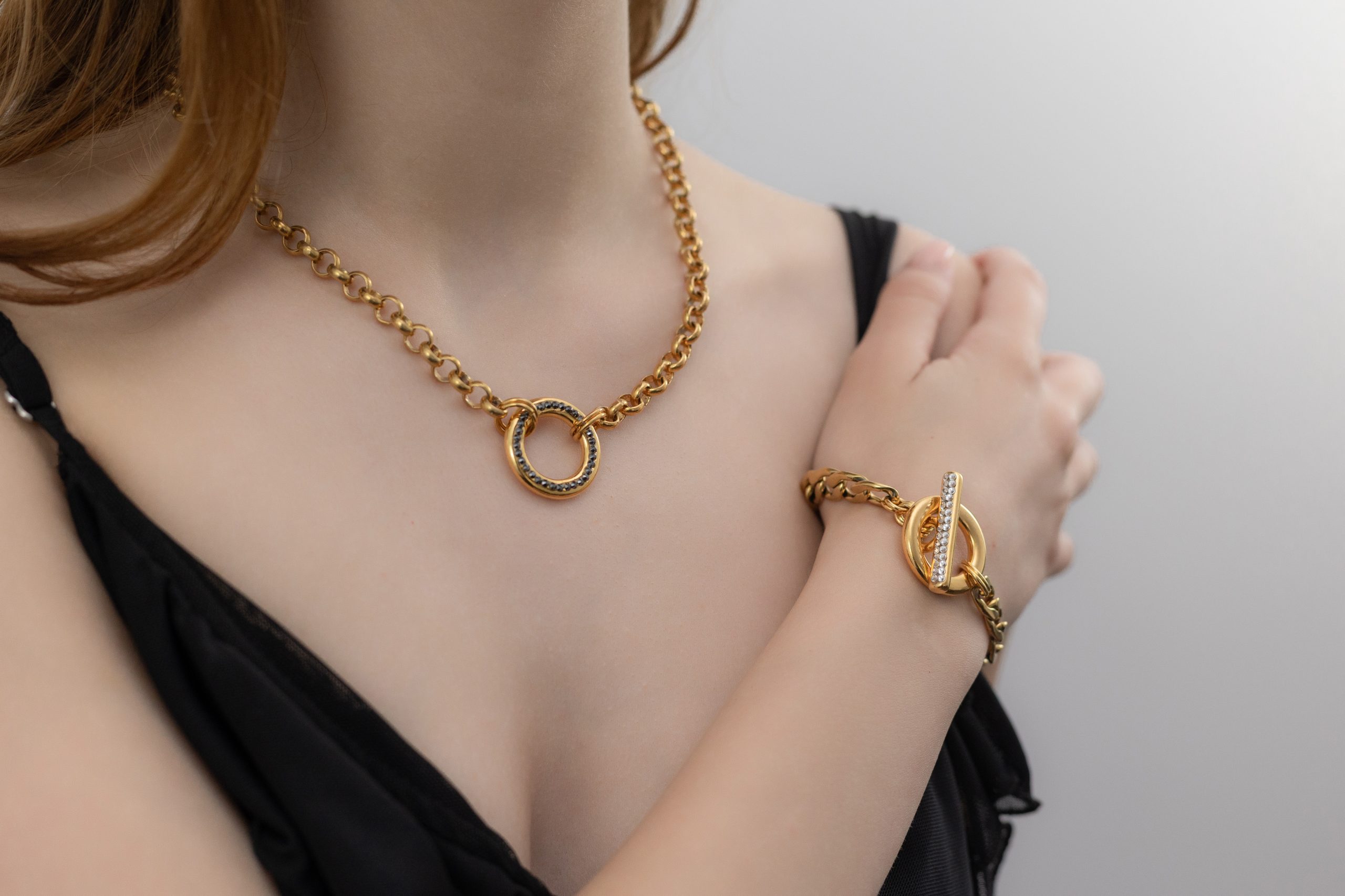 Colier pentru femei gri antracit cu hematite și lanț placat cu aur de 24k