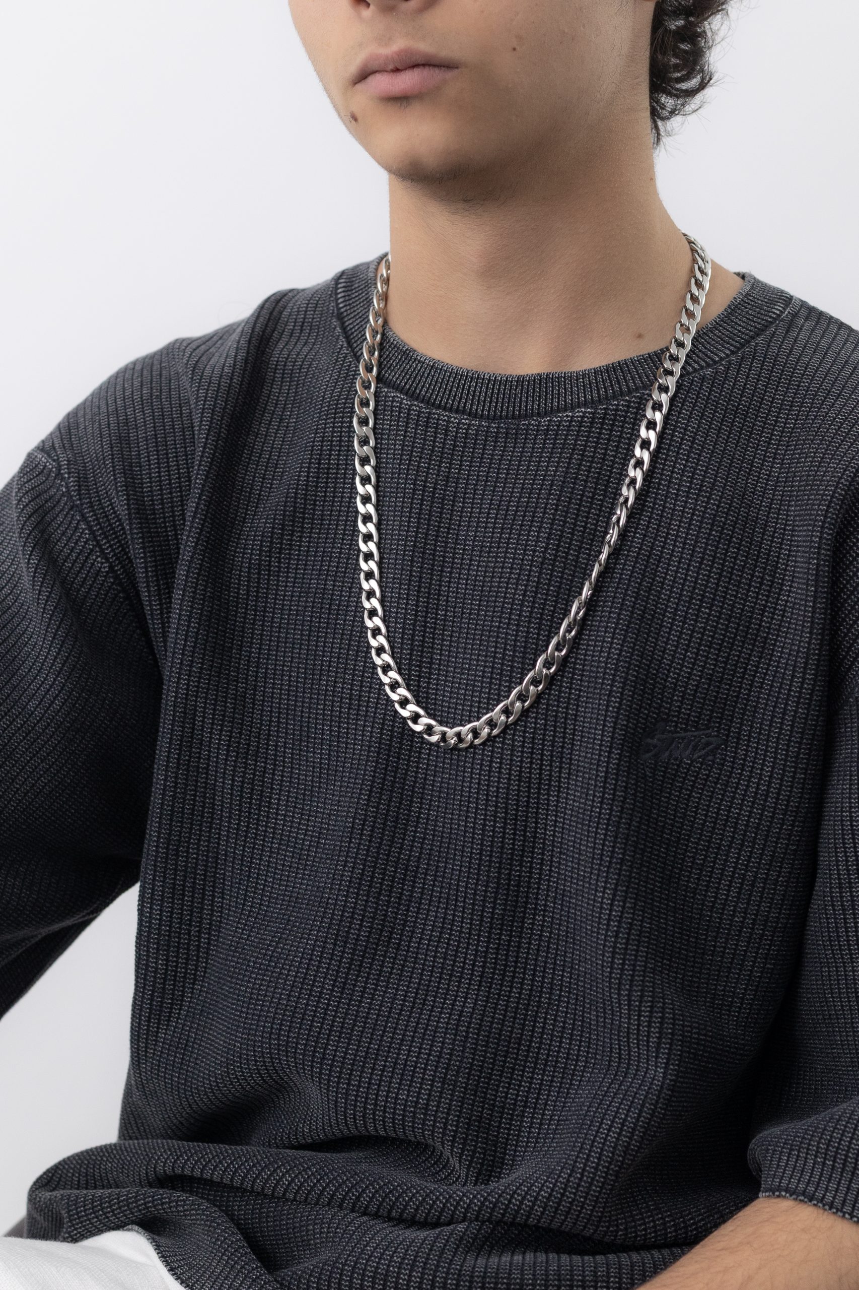 Colier unisex realizat din oțel inoxidabil, lucrătură stil cubanez. Dispune de un sistem de închidere reglabil, tip homar, cu lanț și placat cu argint. Lungimea colierului variază între 66 cm – 71 cm, extensia fiind de 5 cm. Acest colier este hipoalergenic. Piesele metalice sunt fabricate din ZAMAC (Zinc Aluminiu și Cupru) sau ALAMĂ (Fără nichel). Toate produsele noastre care intră în contact cu pielea sunt conforme cu Regulamentul european privind conținutul de nichel, cadmiu și plumb. Produs manual în Grecia! Referința: N0218S