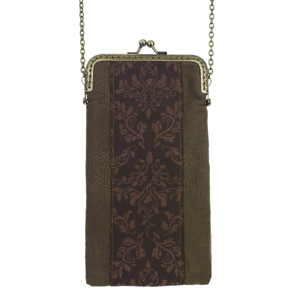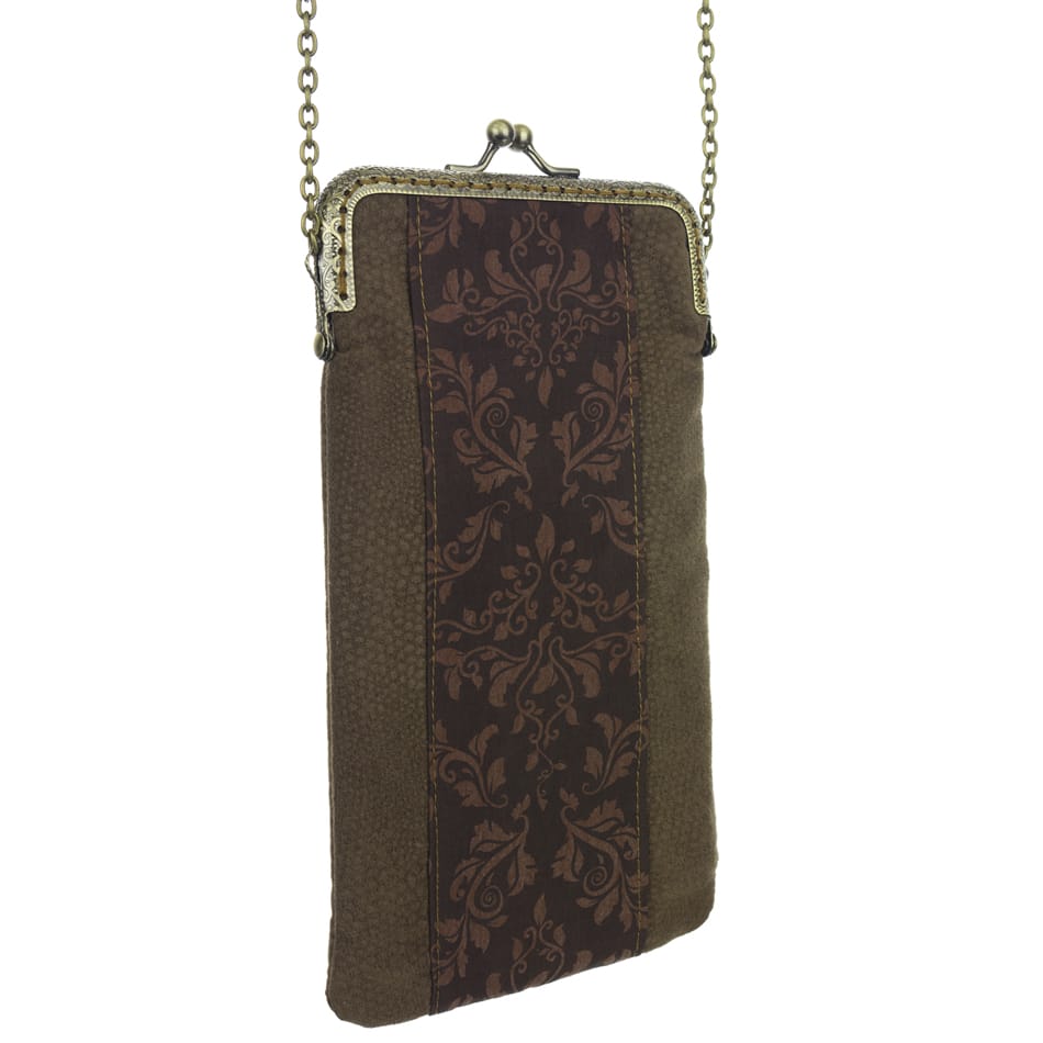 Husă Elegance, tip poșetă, pentru ochelari sau telefon mobil, confecționată din catifea din fibre sintetice și o linie din țesătură de in imprimată manual* cu cerneluri ecologice, certificate, pe bază de apă*. Țesătura de in este realizată din fibre vegetale de in, este hipoalergenică, ceea ce o face un material mai bun pentru persoanele sensibile și cu alergii. De asemenea, pe partea interioară dispune de o armătură de protecție moale din vatelină pentru protecție suplimentară. Dispune de un lanț metalic subțire, de 124 cm, poșeta _husă putând fi purtată fie pe corp, fie pe umăr. Rama metalică este cusută manual, punct cu punct, și deține un sistem de închidere cu bile metalice. Dimensiunea husei este de 12 cm x 21 cm, iar deschiderea este de 10 cm. Produs original, în ediție limitată, fabricat manual în Grecia! * Toate imprimeurile din țesături Dafne sunt proiectate și imprimate prin serigrafie manuală, cu cerneluri ecologice fără solvenți, certificate de către Soil Association Certification Ltd ca fiind organice și conform standardului ɶko-Tex 100 clasa 1. Referinta: ESC3AW24