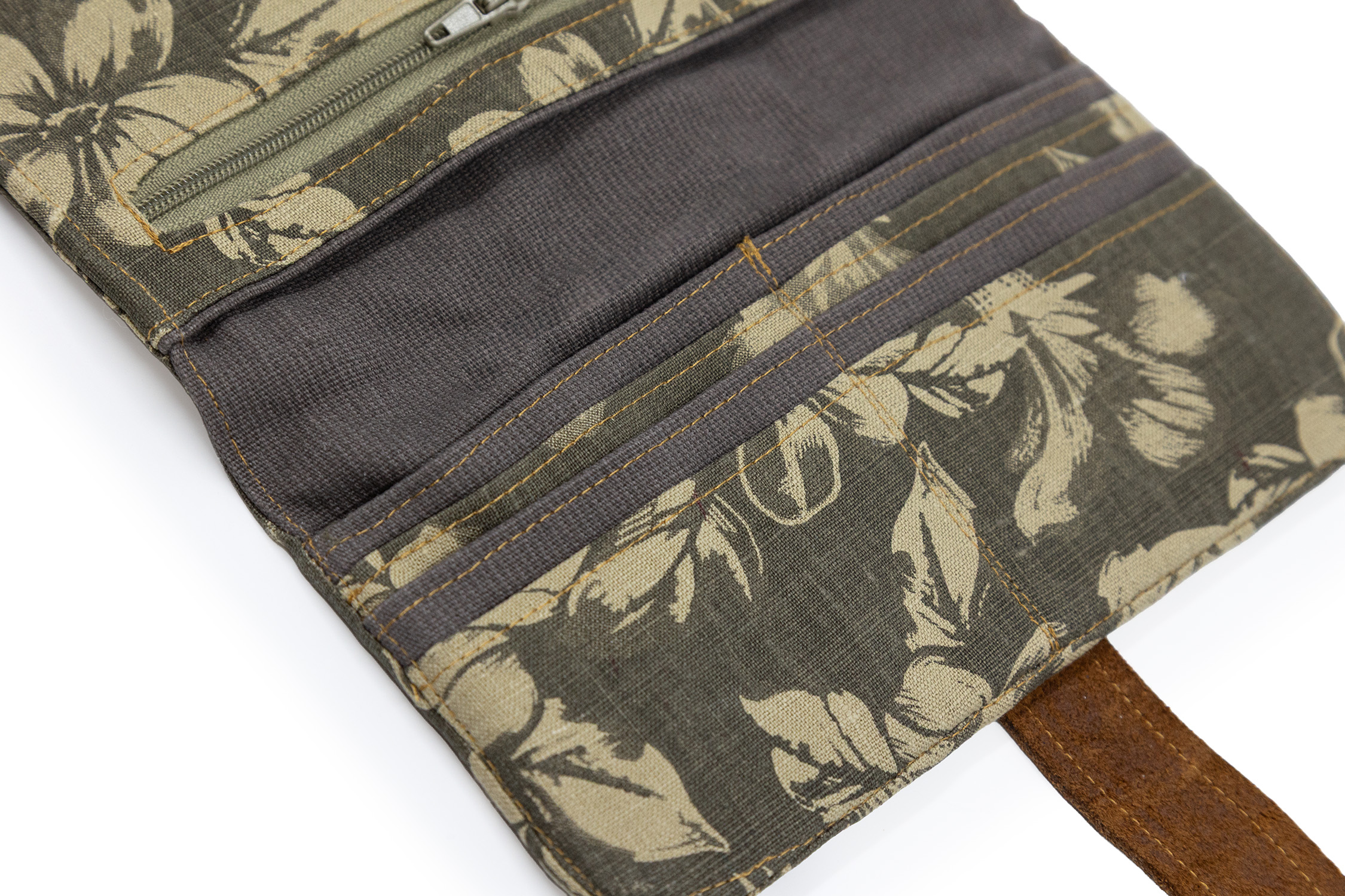 Portofel kaki din bumbac Flori mari din grădină