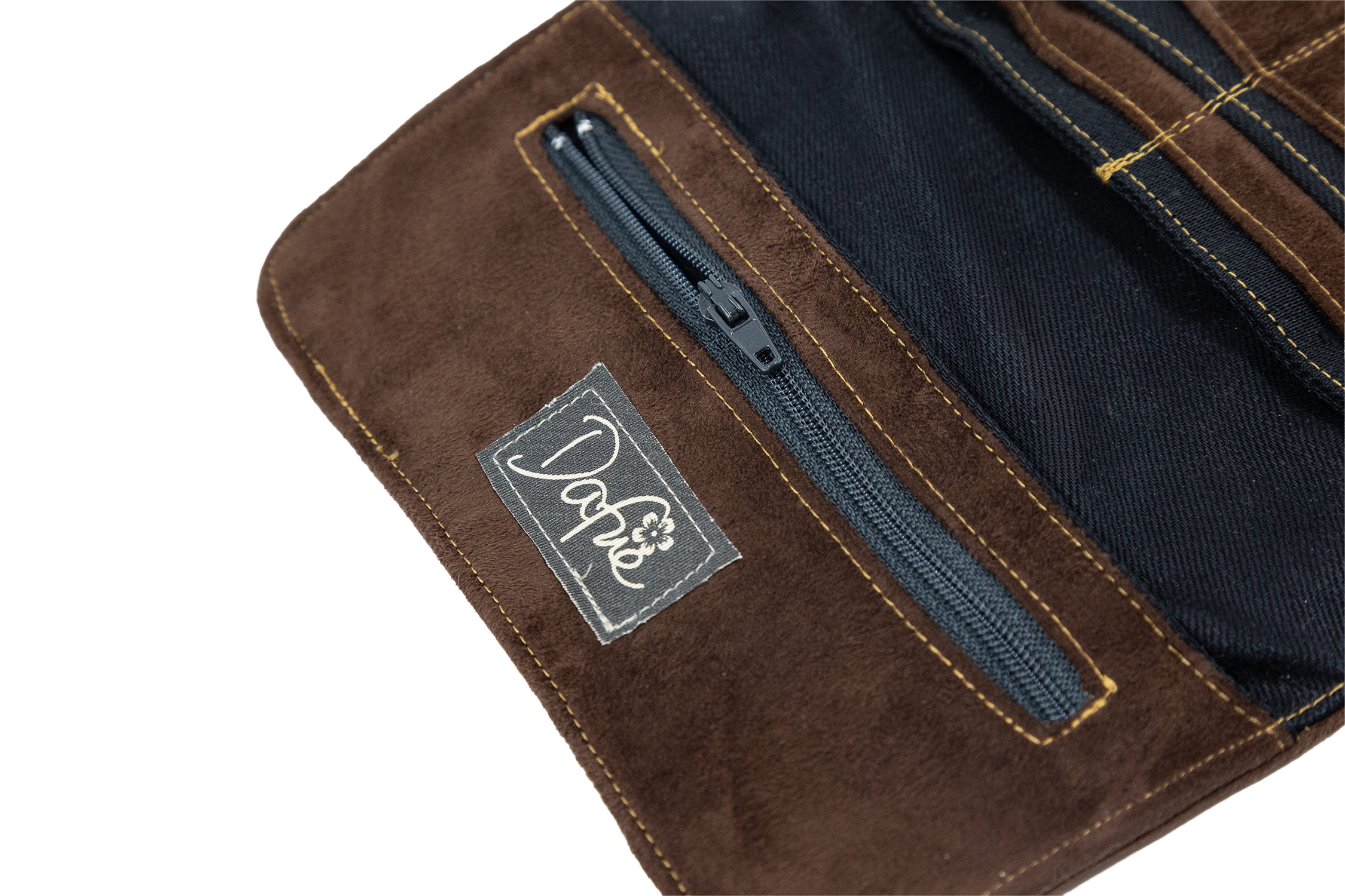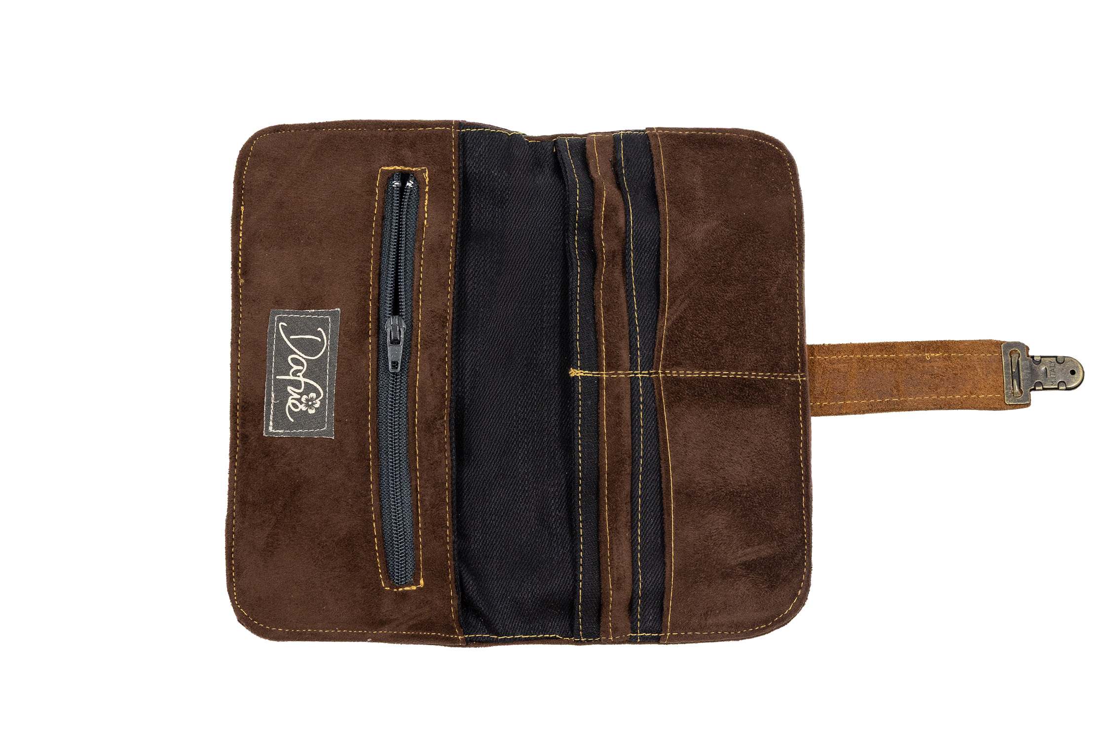 Portofel distinct si util, proiectat cu 6 secțiuni pentru carduri, 2 secțiuni mari pentru bancnote și un buzunar spațios cu fermoar. Partea exterioară este confecționată din catifea din fibre sintetice cu o inserție verticală din vâscoză imprimată manual* cu cerneluri ecologice, certificate, pe bază de apă*, iar partea interioară este din bumbac simplu. Vâscoza este un material textil moale, neted și fluid, produs prin extragerea unor compuși naturali din lemn sau din pulpă de bumbac și care este utilizată ca înlocuitor al mătăsii. De asemenea, este prevăzut cu un sistem de închidere metalic și curea cu piele naturală tăbăcită. Dimensiunea porotfelului este de 20 cm x 11 cm. Produs original, în ediție limitată, fabricat manual în Grecia! * Toate imprimeurile din țesături Dafne sunt proiectate și imprimate prin serigrafie manuală, cu cerneluri ecologice fără solvenți, certificate de către Soil Association Certification Ltd ca fiind organice și conform standardului ɶko-Tex 100 clasa 1. Referința: W4AW24