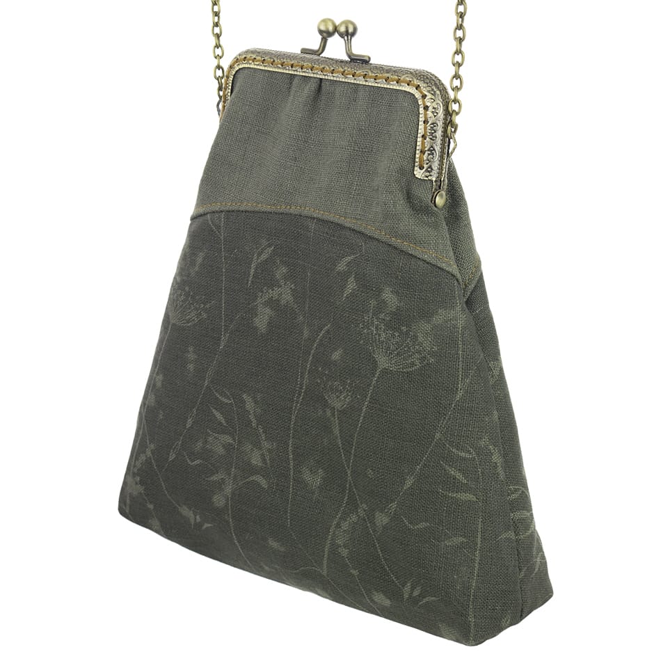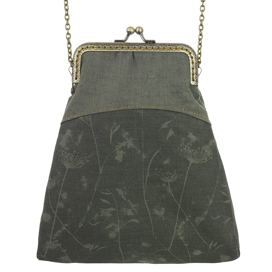 Poșetă Elegance medie, confecționată din in imprimat manual* cu cerneluri ecologice, certificate, pe bază de apă*. Țesătura de in este realizată din fibre vegetale de in, este hipoalergenică, ceea ce o face un material mai bun pentru persoanele sensibile și cu alergii. Dispune de un lanț metalic subțire, reglabil, de 124 cm, poșeta putând fi purtată fie pe corp, fie pe umăr. Rama metalică este cusută manual, punct cu punct, și deține un sistem de închidere cu bile metalice. Dimensiunea poșetei este de 20 cm x 17 cm, iar deschiderea este de 10 cm. Produs original, în ediție limitată, fabricat manual în Grecia! * Toate imprimeurile din țesături Dafne sunt proiectate și imprimate prin serigrafie manuală, cu cerneluri ecologice fără solvenți, certificate de către Soil Association Certification Ltd ca fiind organice și conform standardului ɶko-Tex 100 clasa 1. Referința: EBM8sAW24
