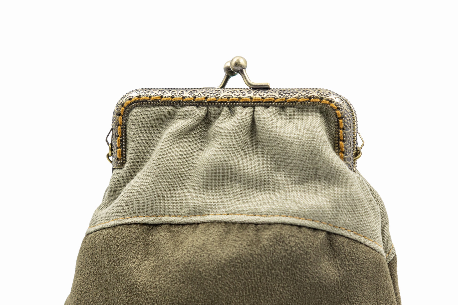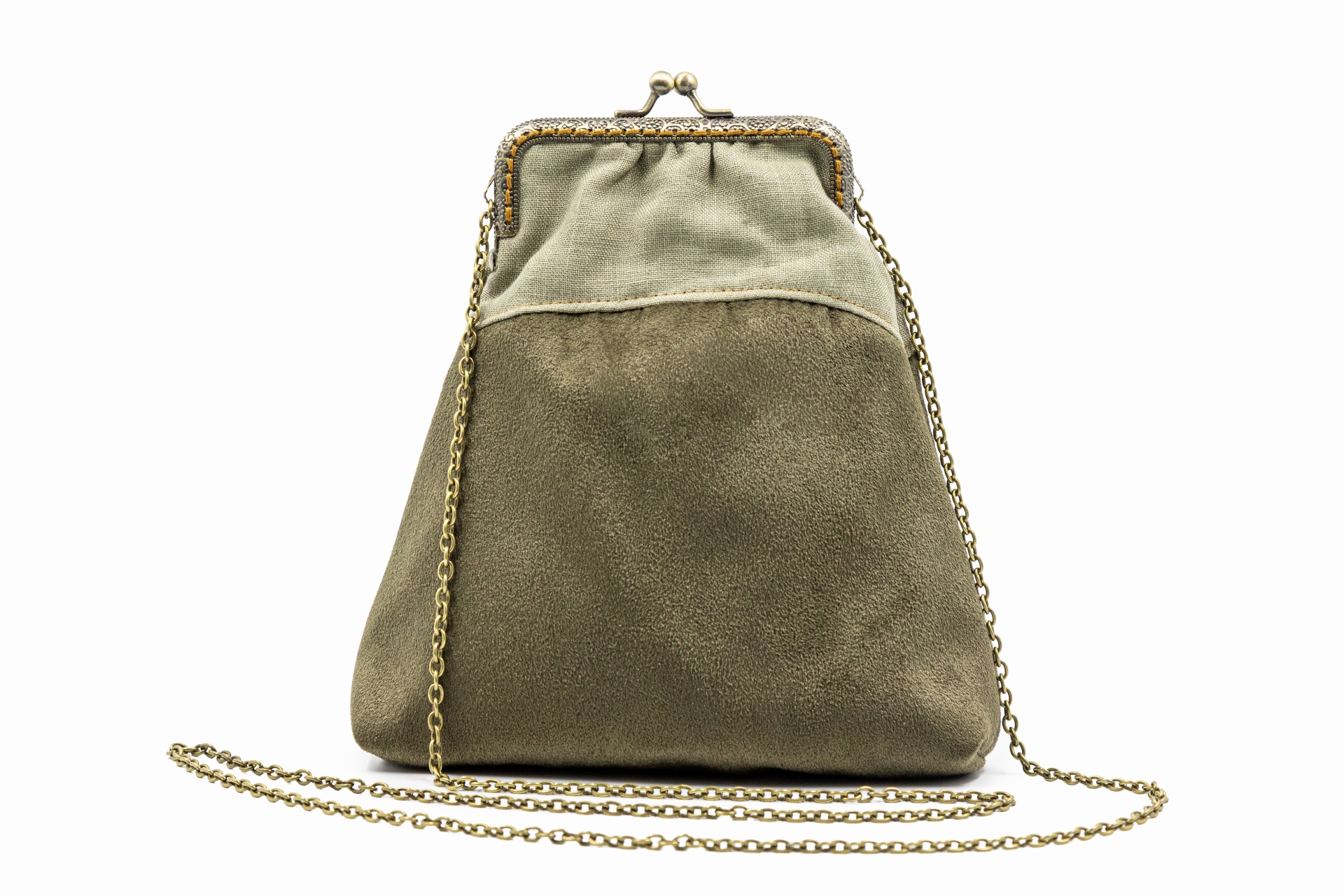 Poșetă Elegance kaki din in și catifea