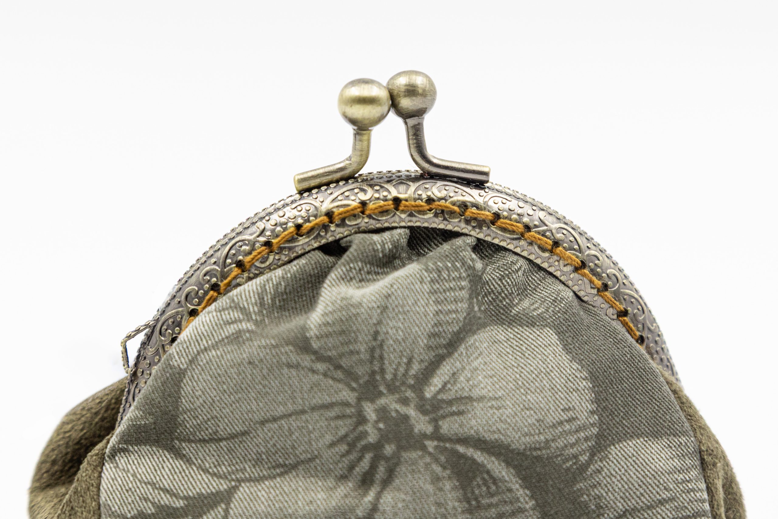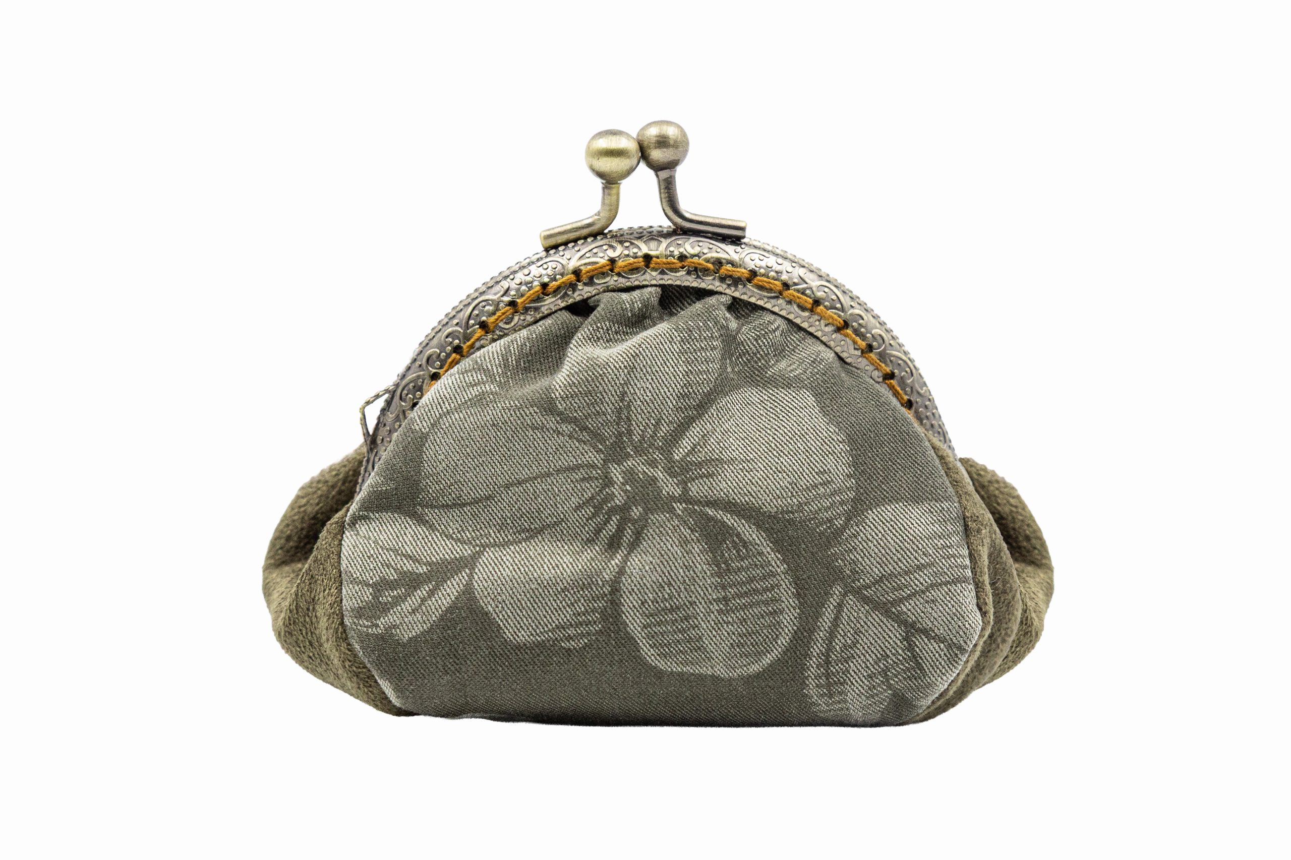 Poșetă micuță Flori mari kaki din catifea și bumbac