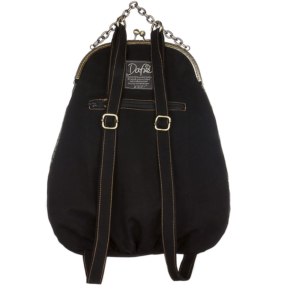 Rucsac spațios și unic, confecționat din bumbac imprimat manual* cu cerneluri ecologice, certificate, pe bază de apă*, proiectat cu căptușeală din bumbac în partea din spate și curele reglabile din bumbac. Bumbacul este o fibră textilă 100% naturală, non alergenic, care permite o bună aerisire, absoarbe și elimină umezeala și este biodegradabil. Căptușeala interioară este echipată cu un buzunar de siguranță cu inchidere cu fermoar și un buzunar exterior pe partea din spate. Dispune de bretele reglabile din bumbac, curelele, pe lângă lungime, fiind reglate cu inele care se deschid și care pot fi conectate la mânerul tip lanț. Rama metalică este cusută manual, punct cu punct, și deține un sistem de închidere cu bile metalice. Dimensiunea rucsacului este de 45 cm x 32 cm. Produs original, în ediție limitată, fabricat manual în Grecia! Toate printurile Dafne sunt proiectate și imprimate prin serigrafie manuală, cu cerneluri ecologice fără solvenți, certificate de Soil Association Certification Ltd ca fiind organice și conform standardului ɶko-Tex 100 clasa 1. Referinta: DBP1AW21