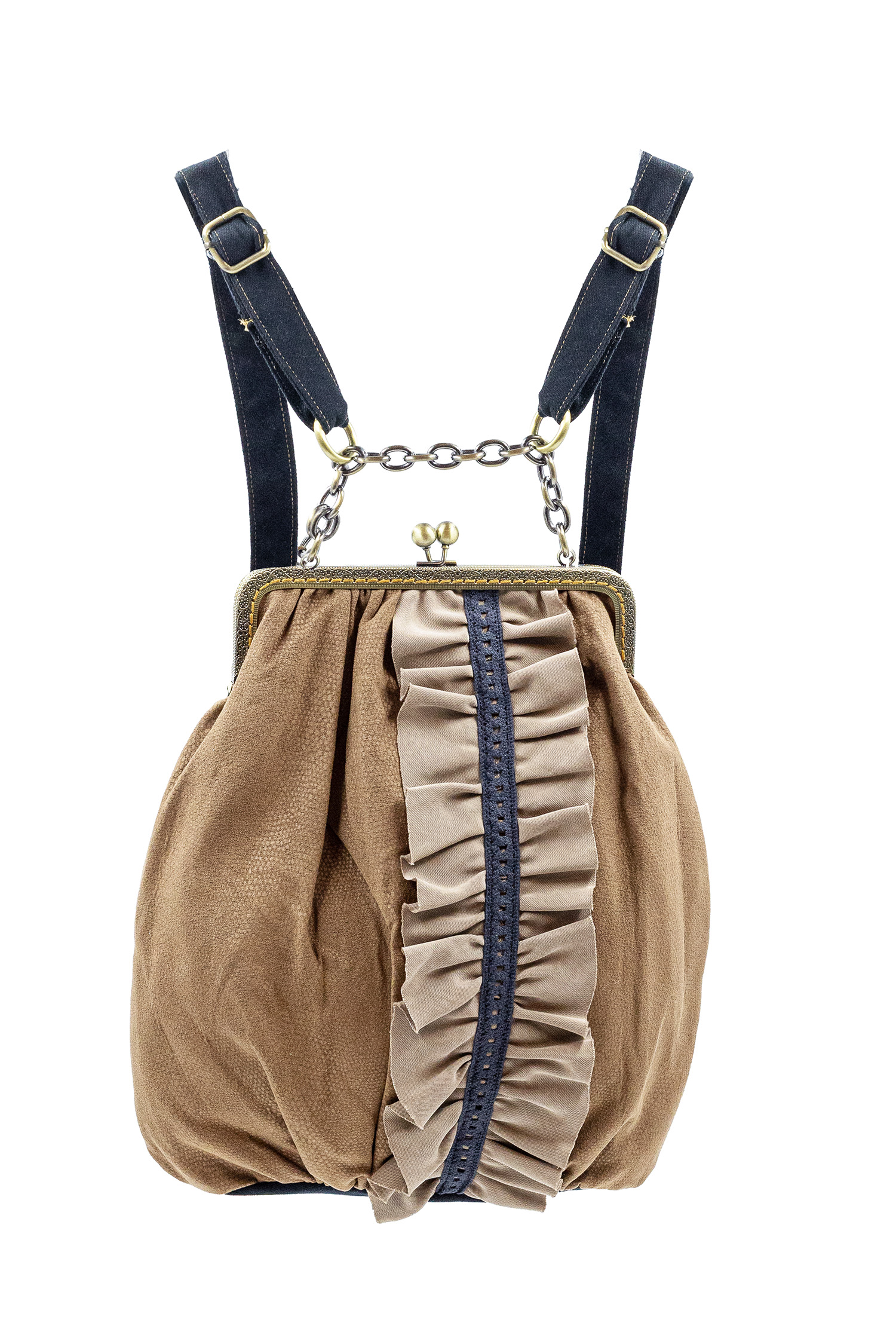 Rucsac unic maro cu volan și dantelă