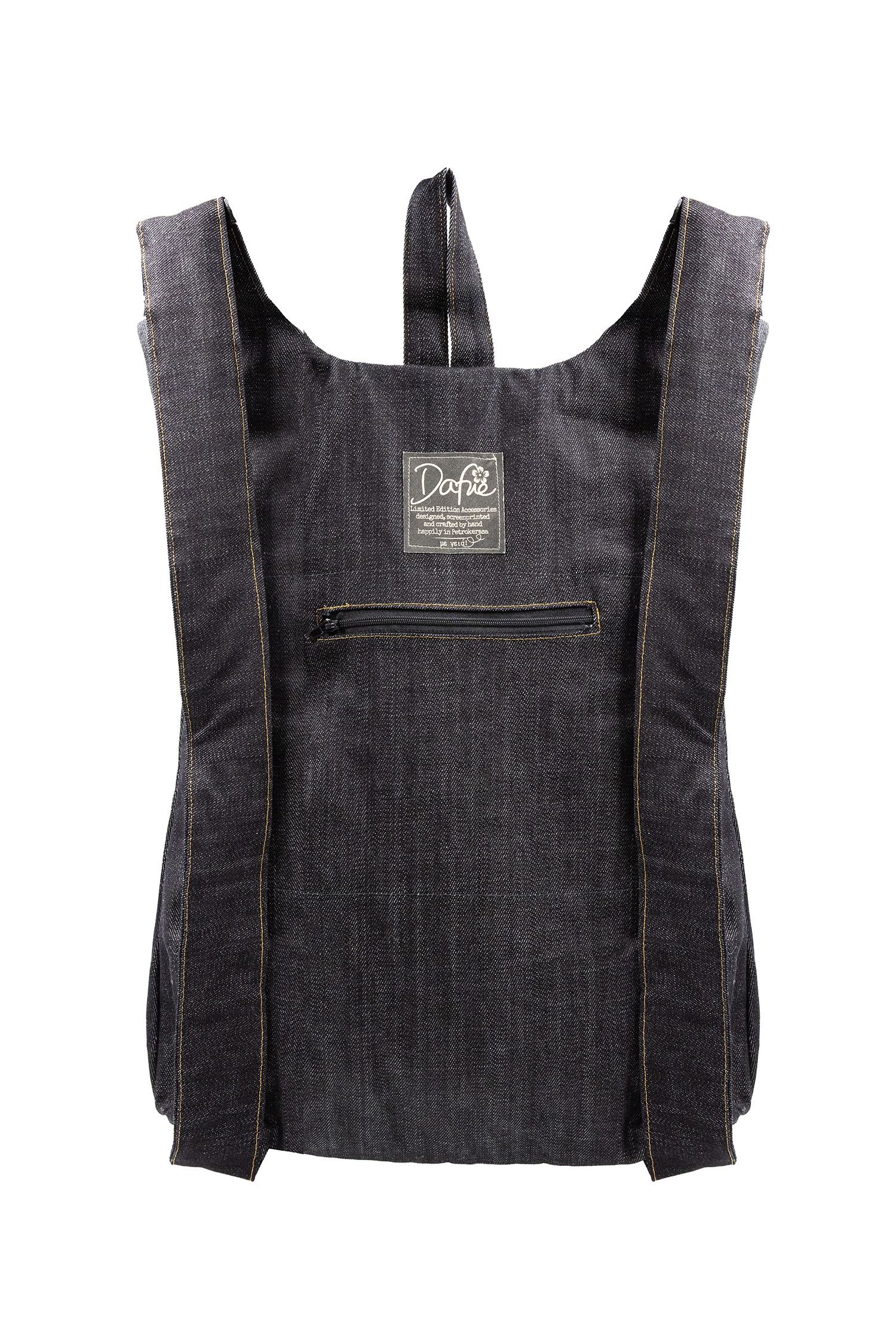 Rucsac unic confecționat din bumbac cu o inserție verticală subțire imprimată manual, cu cerneluri ecologice, certificate, pe bază de apă*, proiectat cu căptușeală din bumbac în partea din spate și curele reglabile din bumbac. Bumbacul este o fibră textilă 100% naturală, non alergenic, care permite o bună aerisire, absoarbe și elimină umezeala și este biodegradabil. Rucsacul se deschide pe o cu un fermoar de 40 cm lungime. Dispune de un buzunar exterior „ascuns” la spate, cu închidere cu fermoar. Dimensiunea rucsacului este de 45 cm x 36 cm. Produs original, în ediție limitată, fabricat manual în Grecia! Toate printurile Dafne sunt proiectate și imprimate prin serigrafie manuală, cu cerneluri ecologice fără solvenți, certificate de Soil Association Certification Ltd ca fiind organice și conform standardului ɶko-Tex 100 clasa 1. Referința: ML2AW24