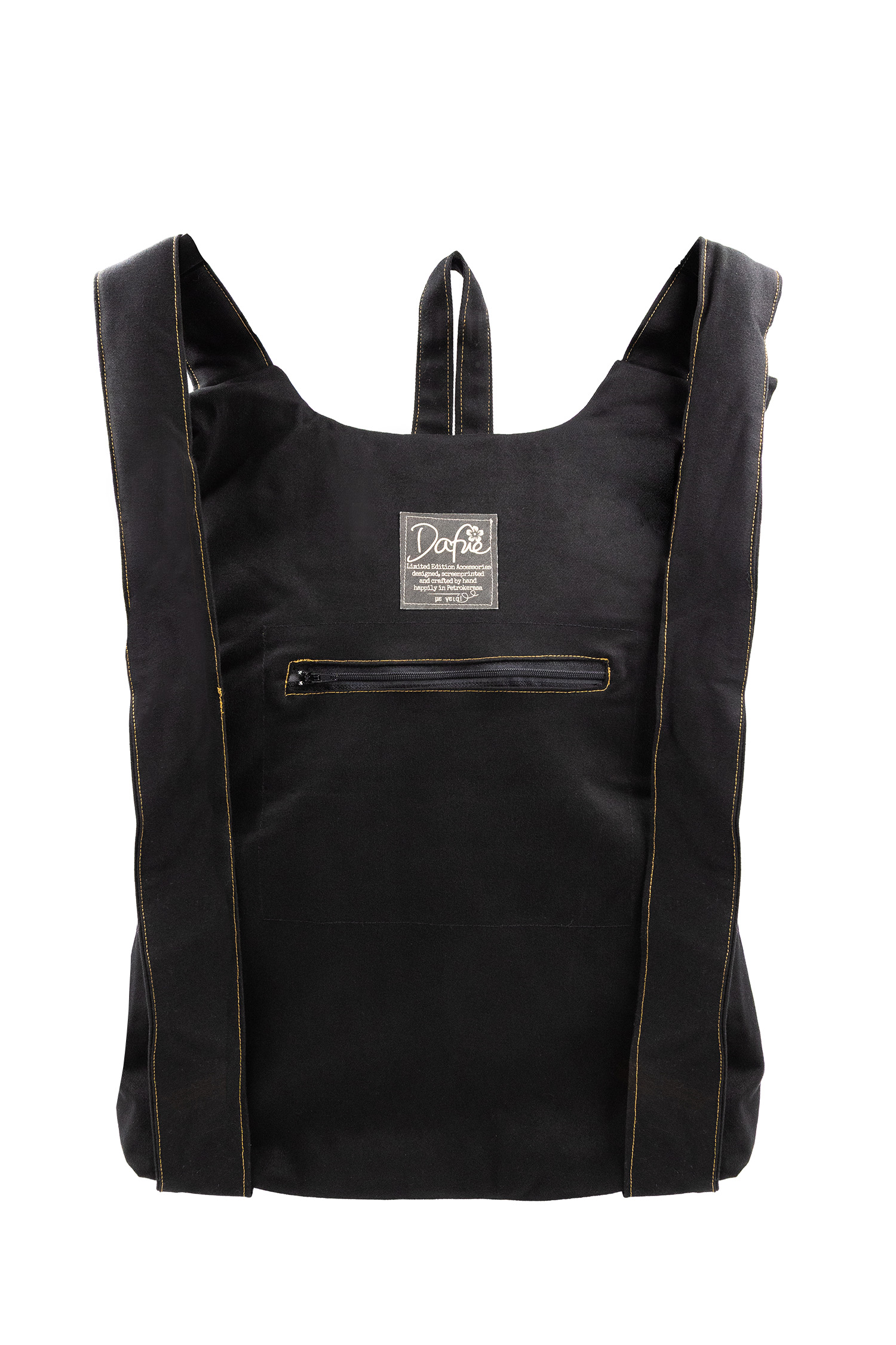 Rucsac unic confecționat din bumbac imprimat manual, cu cerneluri ecologice, certificate, pe bază de apă*, proiectat cu căptușeală din bumbac în partea din spate și curele reglabile din bumbac. Bumbacul este o fibră textilă 100% naturală, non alergenic, care permite o bună aerisire, absoarbe și elimină umezeala și este biodegradabil. Rucsacul se deschide pe o parte cu un fermoar de 40 cm lungime. Dispune de un buzunar exterior „ascuns” la spate, cu închidere cu fermoar. Dimensiunea rucsacului este de 45 cm x 36 cm. Produs original, în ediție limitată, fabricat manual în Grecia! Toate printurile Dafne sunt proiectate și imprimate prin serigrafie manuală, cu cerneluri ecologice fără solvenți, certificate de Soil Association Certification Ltd ca fiind organice și conform standardului ɶko-Tex 100 clasa 1. Referința: ML1AW24